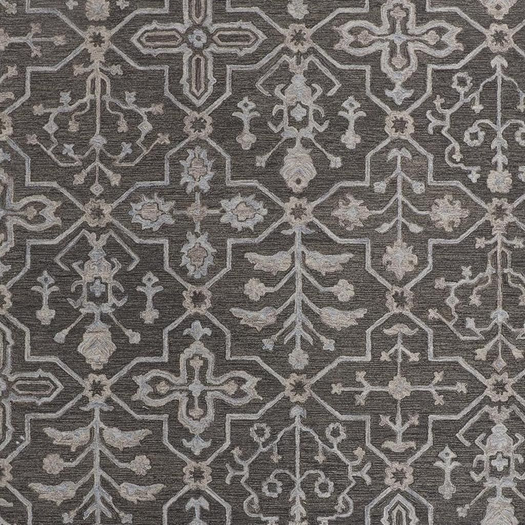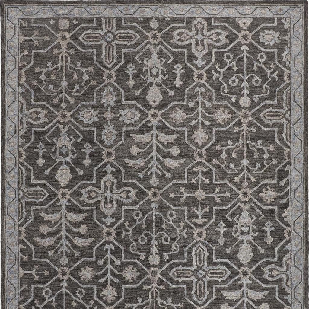 floral hand tufted area rug, hand tufted area rug, tufted area rug, blue gray charcoal wool floral, charcoal wool floral hand tufted |