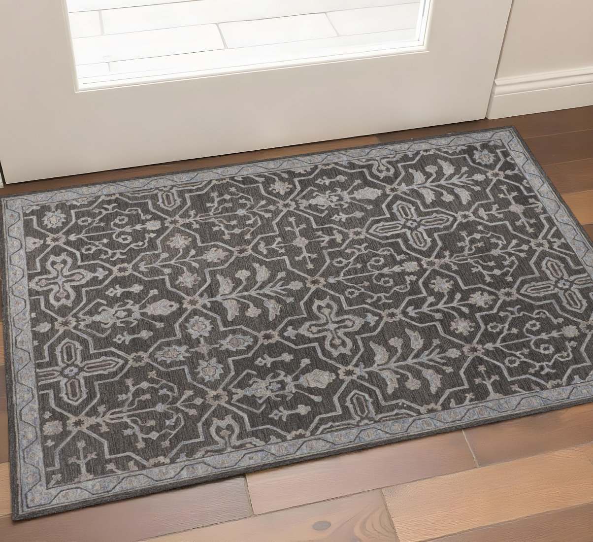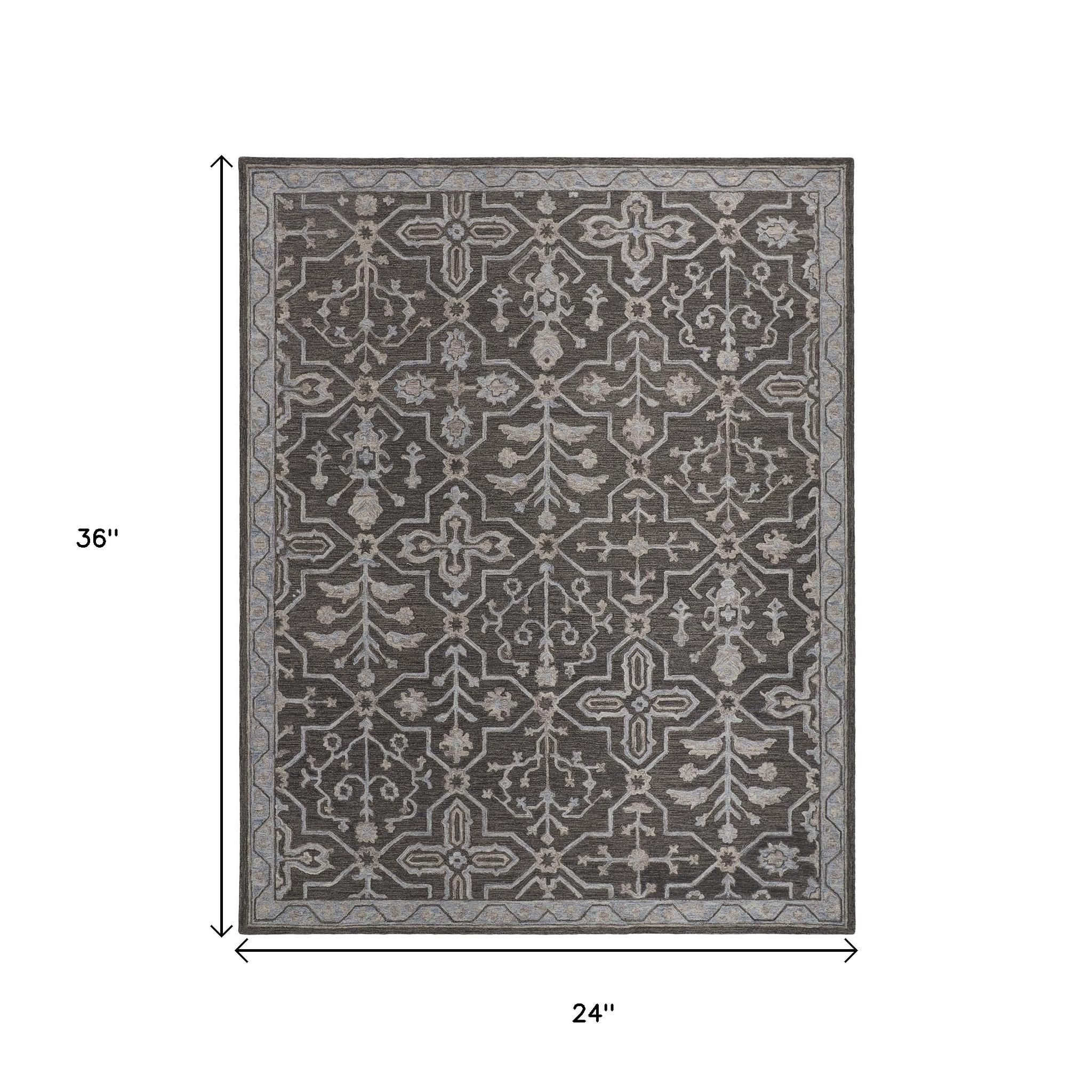 Set an inviting tone in your space with this 2-foot x 3-foot blue gray and charcoal wool floral hand tufted area rug. Ideal for spaces with kids and pets, this rug is stain resistant to help repel dirt and spilled liquids. Crafted by skilled artisans, this hand tufted rug is genuine and unique. No two will be exactly alike. Rugs are a great way to showcase your style, hide imperfections, warm your home and reduce noise. 24.00-inch h x 36.00-inch w x 0.37-inch d.