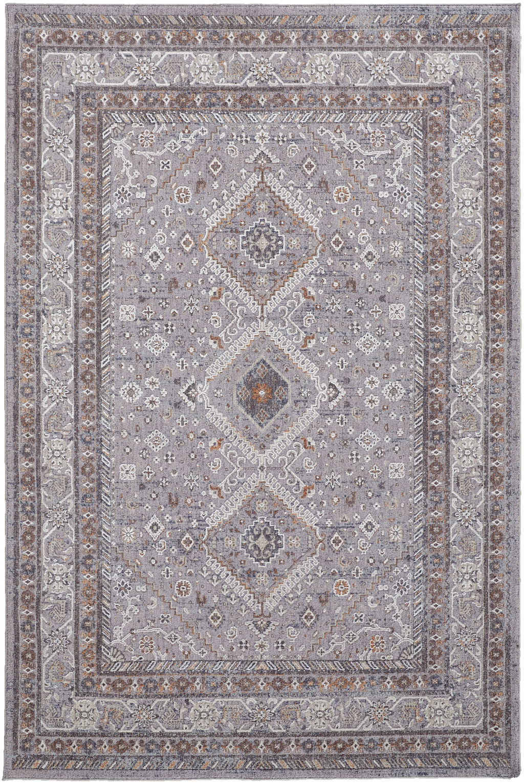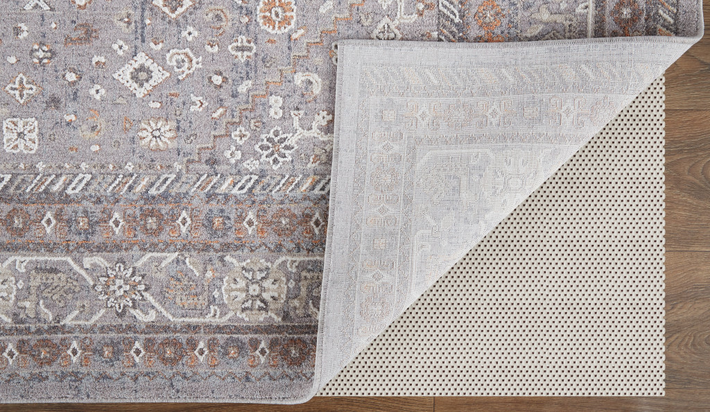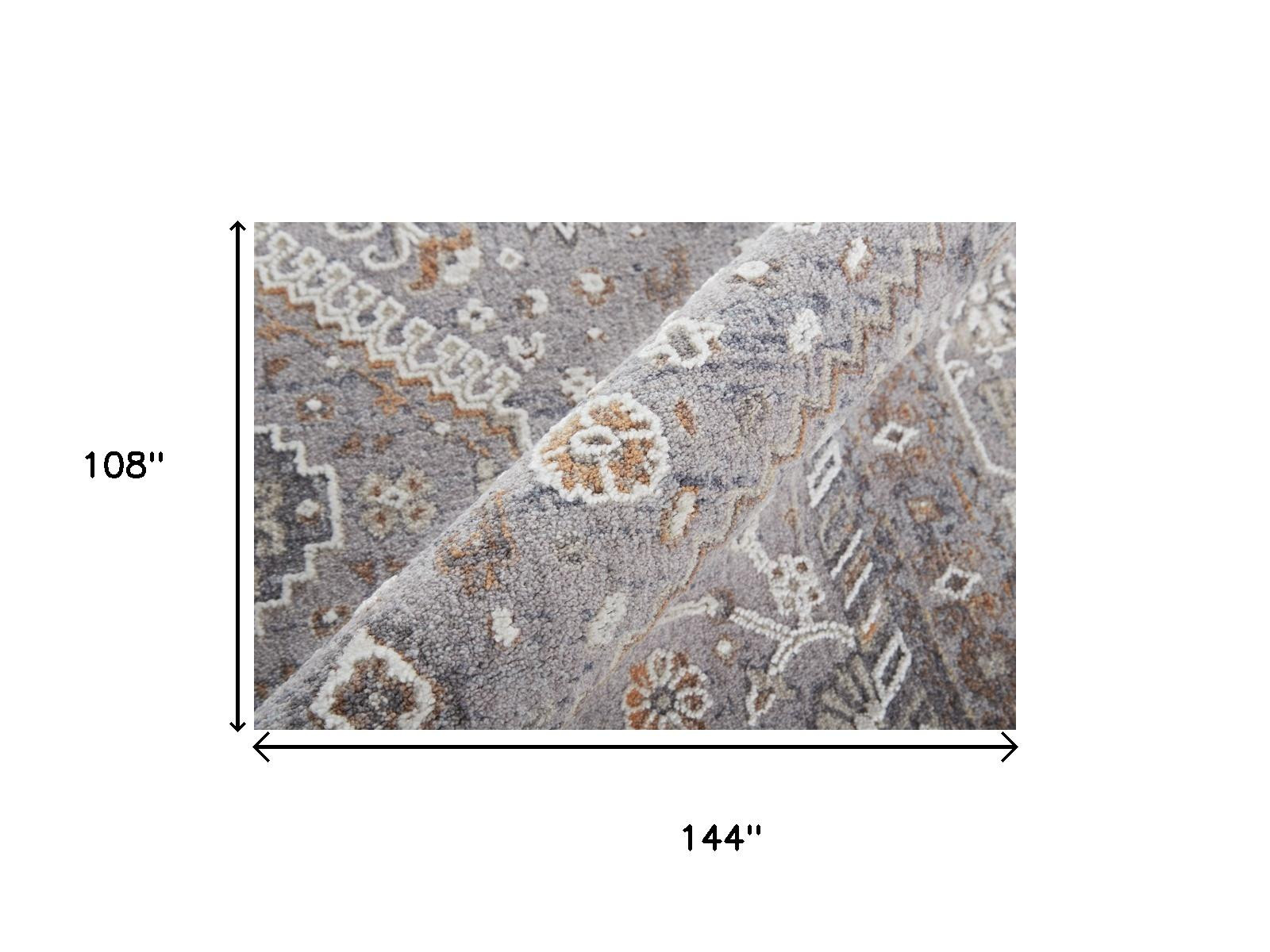 Set an inviting tone in your space with this 9' x 12' gray orange and ivory floral power loom stain resistant area rug. This rectangle shaped rug features a floral design in gray orange and ivory to give it visual interest. A classic shape marries with good looking design for your space Made in Turkey, this rug offers high quality combined with good looking designer sensibilities. Ideal for spaces with kids and pets, this rug is stain resistant to help repel stains and spilled liquids. Area Rugs help to give warmth and sense of home to your space. 0.47" H x 108" W x 144" D