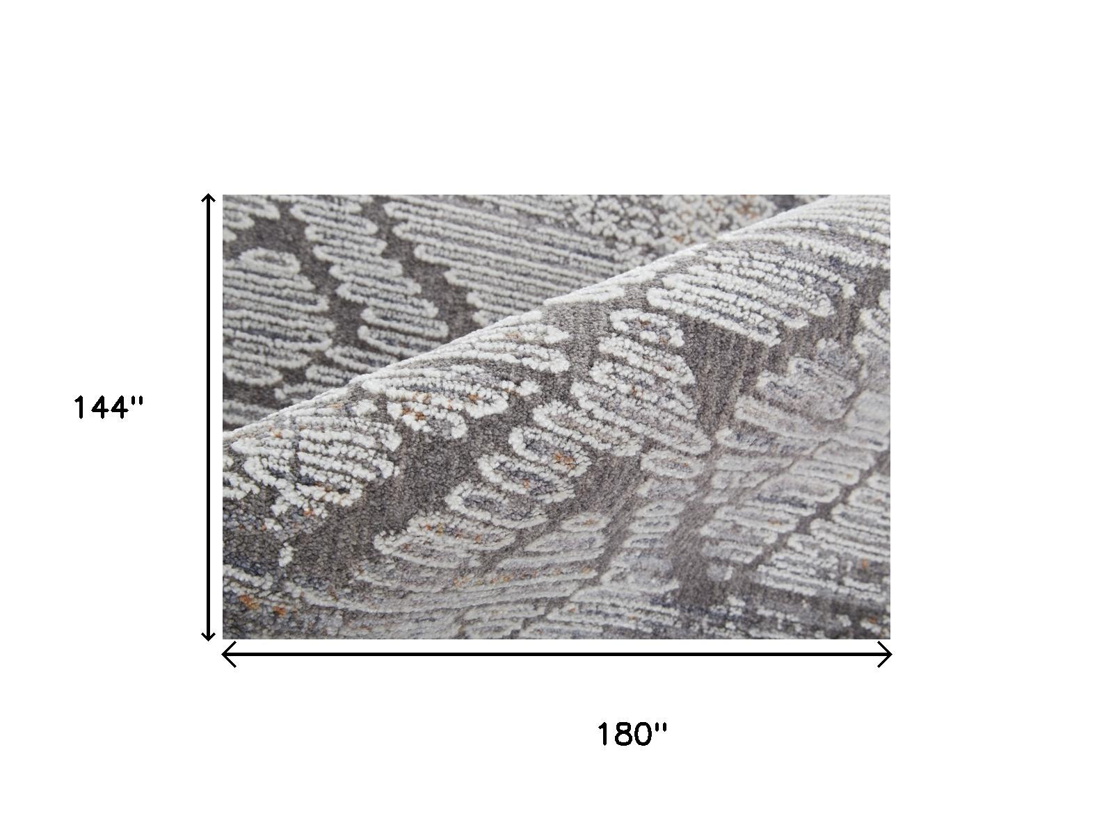 Add great coloration and comfortable texture to your space with this 12' x 15' ivory and gray geometric power loom distressed stain resistant area rug. This rectangle shaped rug features a geometric design in ivory and gray to give it visual interest. A classic shape marries with good looking design for your space This superior Turkish rug represents the highest quality and is built to last. Ideal for spaces with kids and pets, this rug is stain resistant to help repel stains and spilled liquids. Area Rugs help to give warmth and sense of home to your space. 0.47" H x 144" W x 180" D