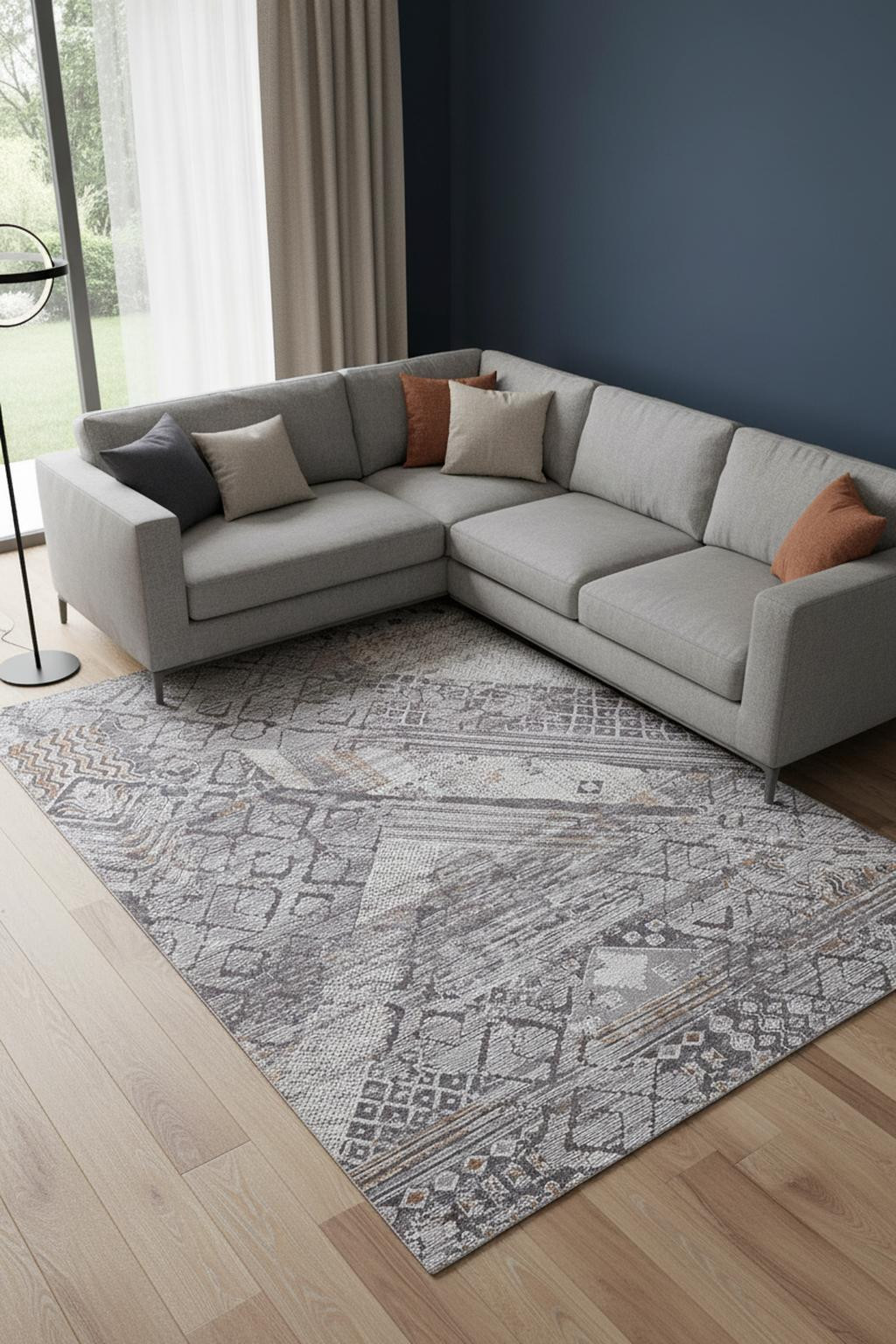 distressed stain resistant area rug, stain resistant area rug, resistant area rug, loom distressed stain resistant area, ivory gray geometric power loom |