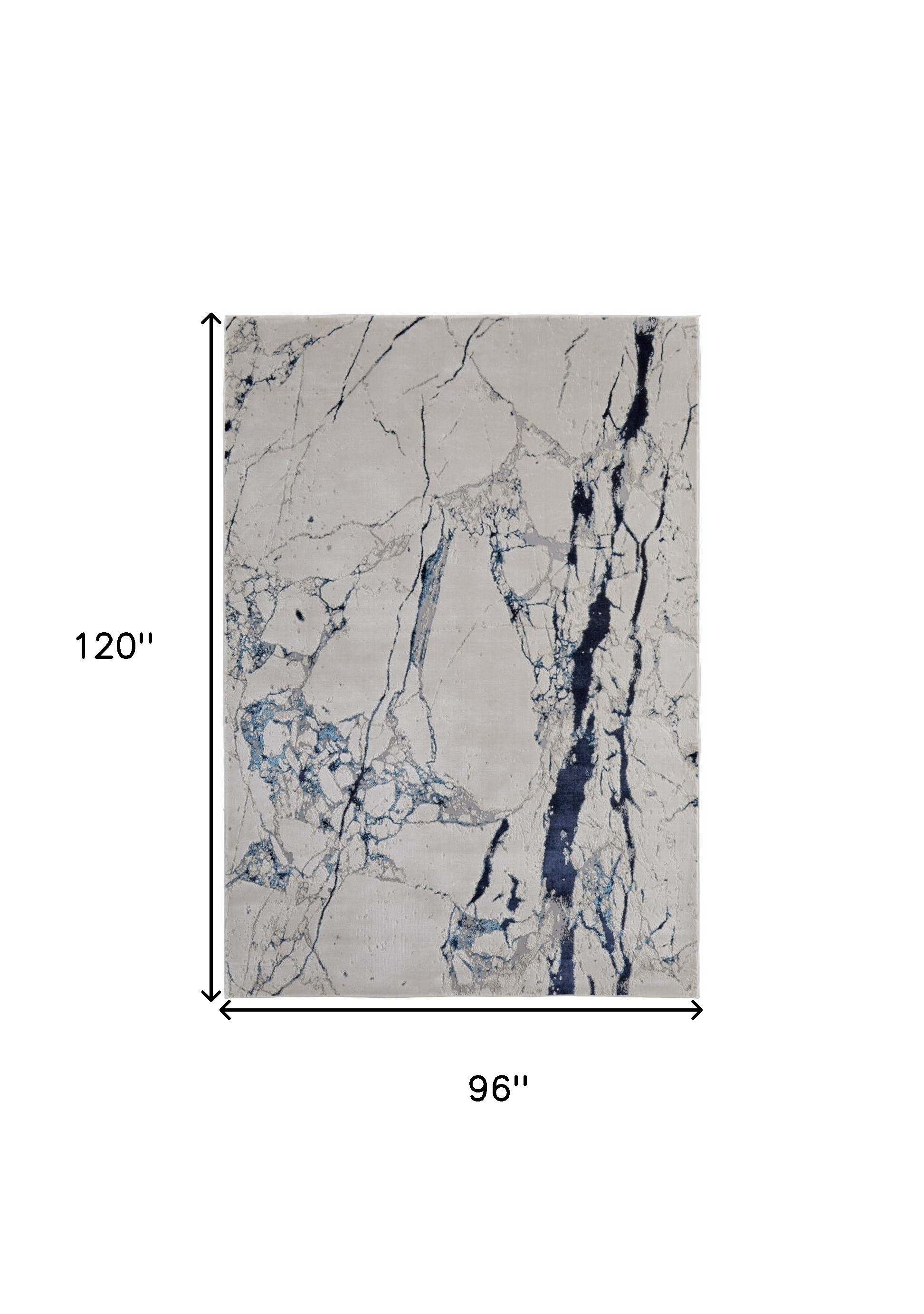 This 8-foot x 10-foot ivory and blue marble power loom distressed area rug, is a great way to add warmth to a room. This rectangle shaped rug features a marble design in ivory and blue to give it visual interest. A classic shape marries with good looking design for your space ideal for spaces with kids and pets, this rug is stain resistant to help repel stains and spilled liquids. Area rugs help to give warmth and sense of home to your space. 96-inch H x 120-inch W x 0.39-inch D