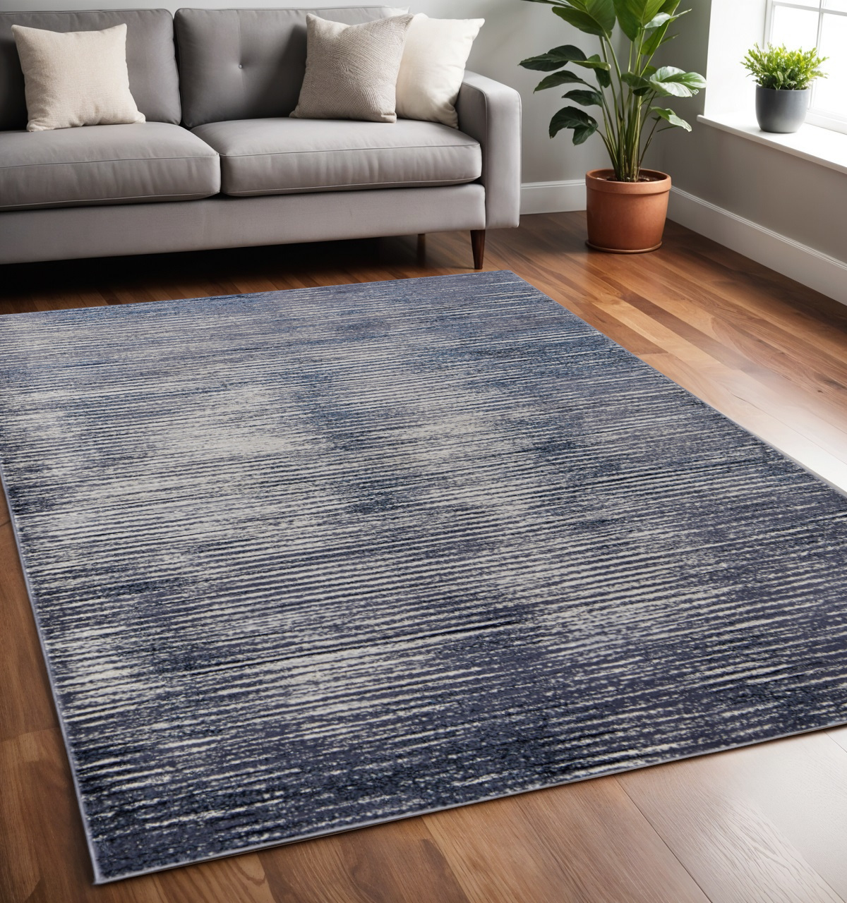 This 5-foot x 8-foot blue and ivory striped power loom distressed non skid area rug, is a great way to add warmth to a room. This rectangle shaped rug features a striped design in blue and ivory to give it visual interest. A classic shape marries with good looking design for your space. 60-inch H x 96-inch W x 0.39-inch D