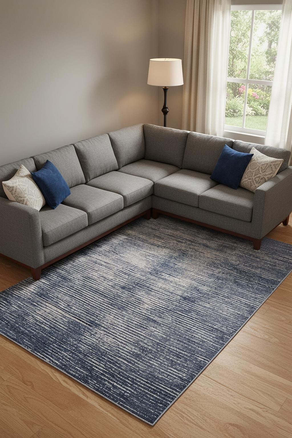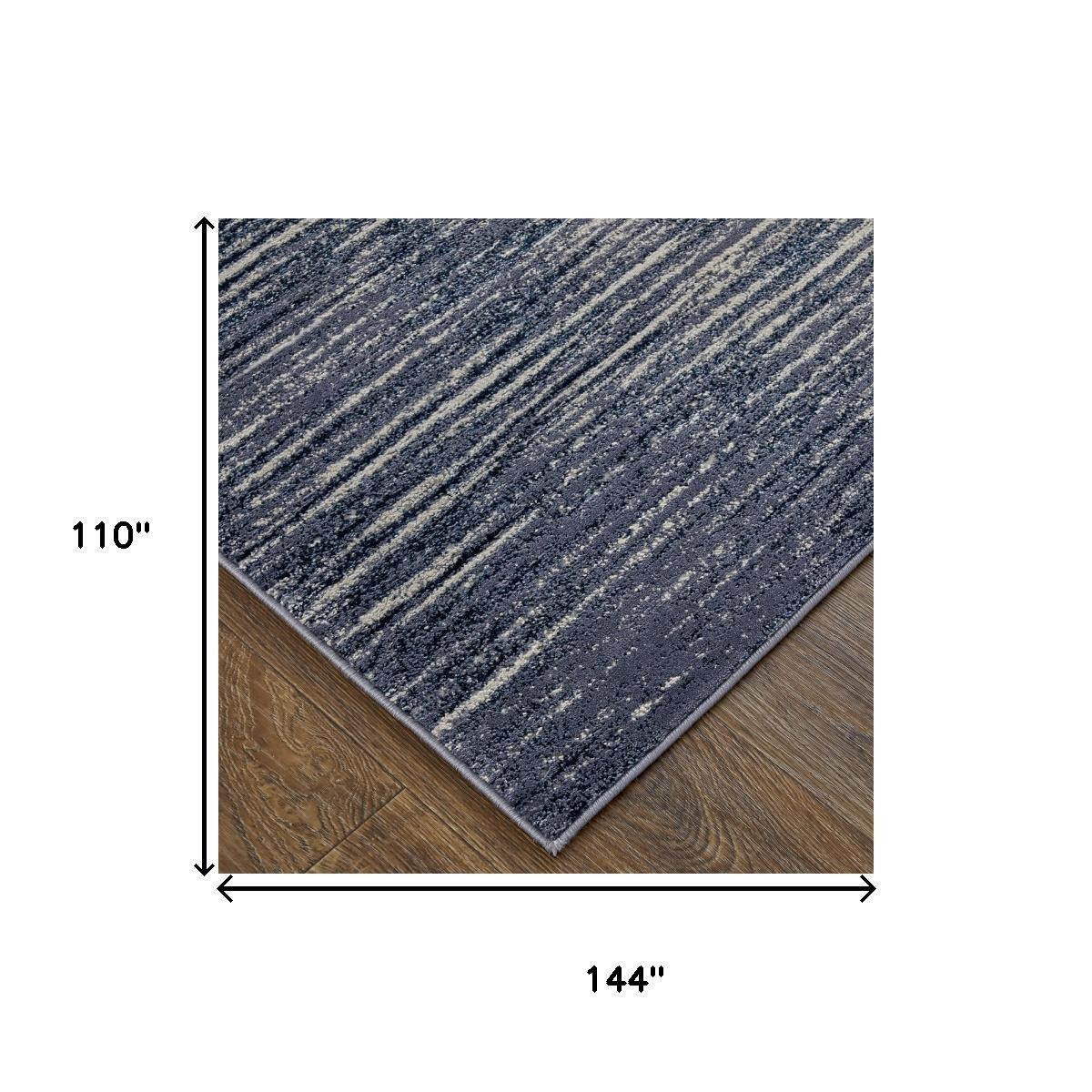 This 9' x 12' blue gray and ivory striped power loom distressed area rug, is a great way to add warmth to a room. This rectangle shaped rug features a striped design in blue gray and ivory to give it visual interest. A classic shape marries with good looking design for your space This superior Turkish rug represents the highest quality and is built to last. Area Rugs help to give warmth and sense of home to your space. 0.39" H x 110" W x 144" D
