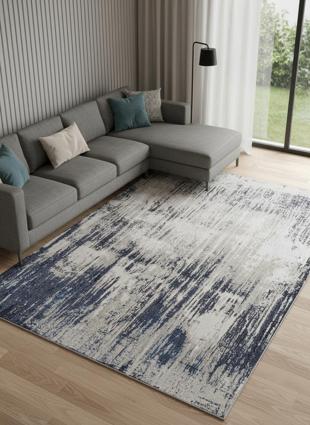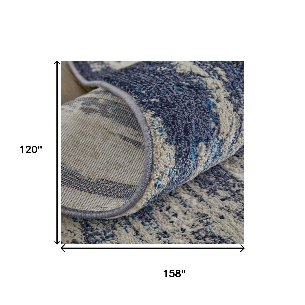 Add some artistry to your room with this 10' x 13' tan blue and ivory abstract power loom distressed area rug. This rectangle shaped rug features a abstract design in tan blue and ivory to give it visual interest. A classic shape marries with good looking design for your space This superior Turkish rug represents the highest quality and is built to last. Area Rugs help to give warmth and sense of home to your space. 0.39" H x 120" W x 158" D