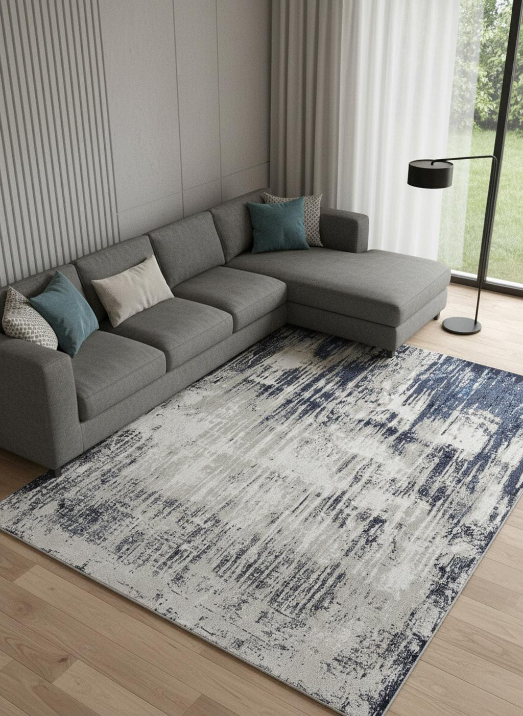 power loom distressed area rug, loom distressed area rug, distressed area rug, ivory abstract power loom distressed, 12' X 15' tan blue ivory |