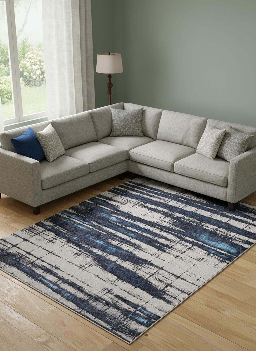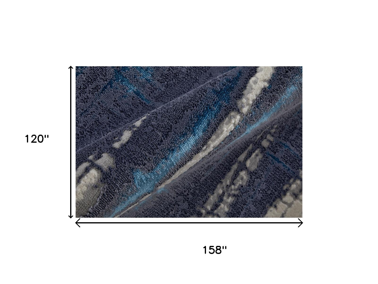 Add great coloration and comfortable texture to your space with this 10' x 13' ivory blue and gray abstract power loom distressed area rug. This rectangle shaped rug features a abstract design in ivory blue and gray to give it visual interest. A classic shape marries with good looking design for your space This superior Turkish rug represents the highest quality and is built to last. Area Rugs help to give warmth and sense of home to your space. 0.39" H x 120" W x 158" D