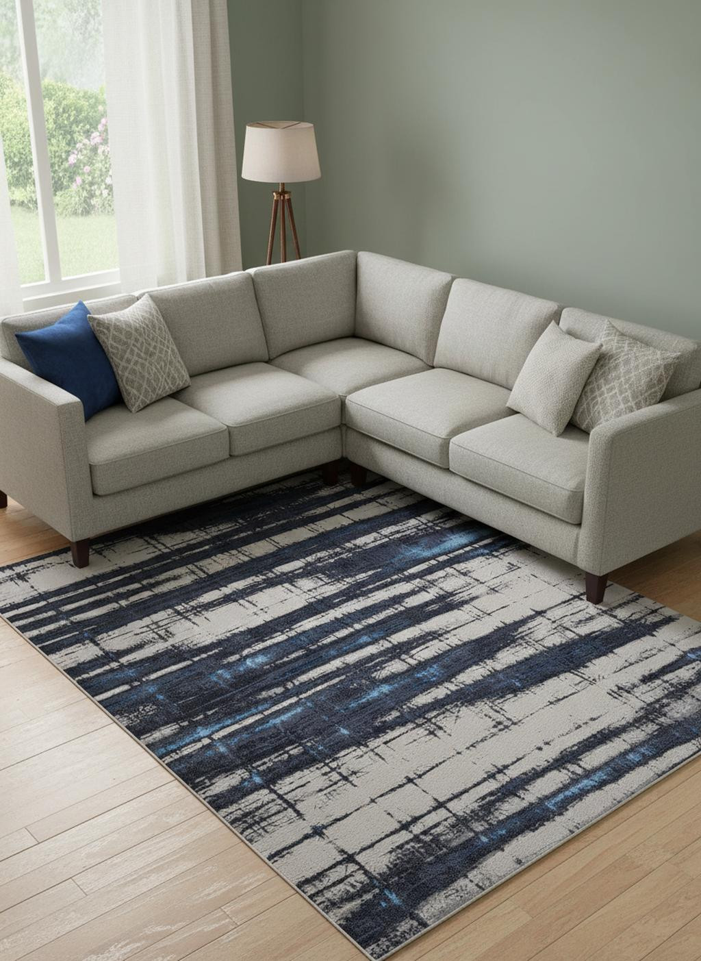 This 12' x 15' ivory blue and gray abstract power loom distressed area rug, is a great way to add warmth to a room. This rectangle shaped rug features a abstract design in ivory blue and gray to give it visual interest. A classic shape marries with good looking design for your space Made in Turkey, this rug offers high quality combined with good looking designer sensibilities. Area Rugs help to give warmth and sense of home to your space. 0.39" H x 144" W x 180" D