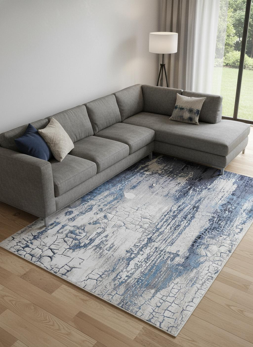 Add some artistry to your room with this 12' x 15' ivory blue and black abstract power loom distressed area rug. This rectangle shaped rug features a abstract design in ivory blue and black to give it visual interest. A classic shape marries with good looking design for your space This superior Turkish rug represents the highest quality and is built to last. Place this area rug against a hardwood or tile floor and it will enliven your living space with style and sophistication. 0.39" H x 144" W x 180" D
