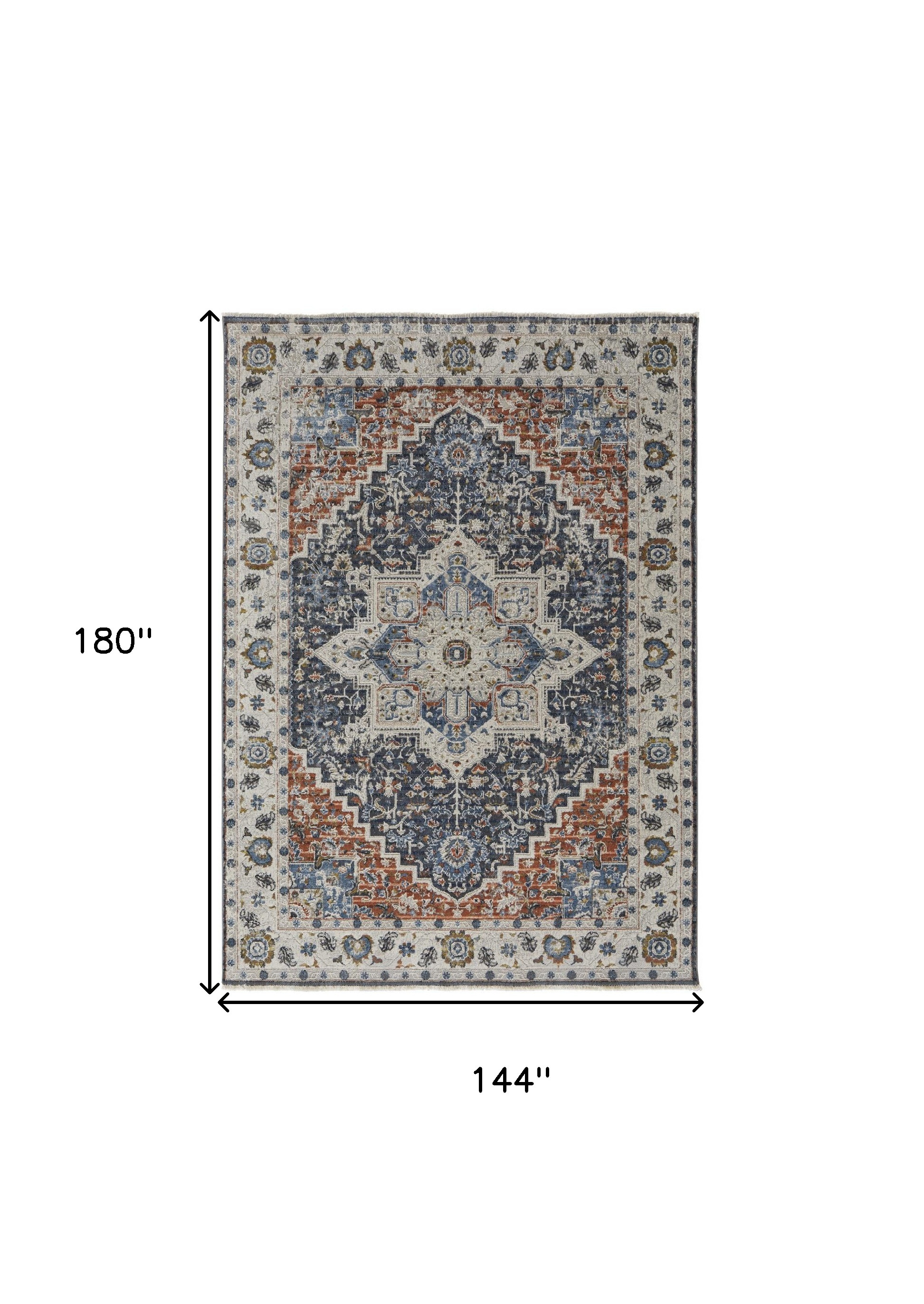 Add some artistry to your room with this 12-foot x 15-foot ivory charcoal and blue oriental area rug with fringe. Built to last, this rug crafted from polypropylene fibers is known for its durability and long lasting appeal. Rugs are a great way to showcase your style, hide imperfections, warm your home and reduce noise. Tassel ends bring a timeless and fashionable look to your interior. 144.00-inch h x 180.00-inch w x 0.39-inch d.