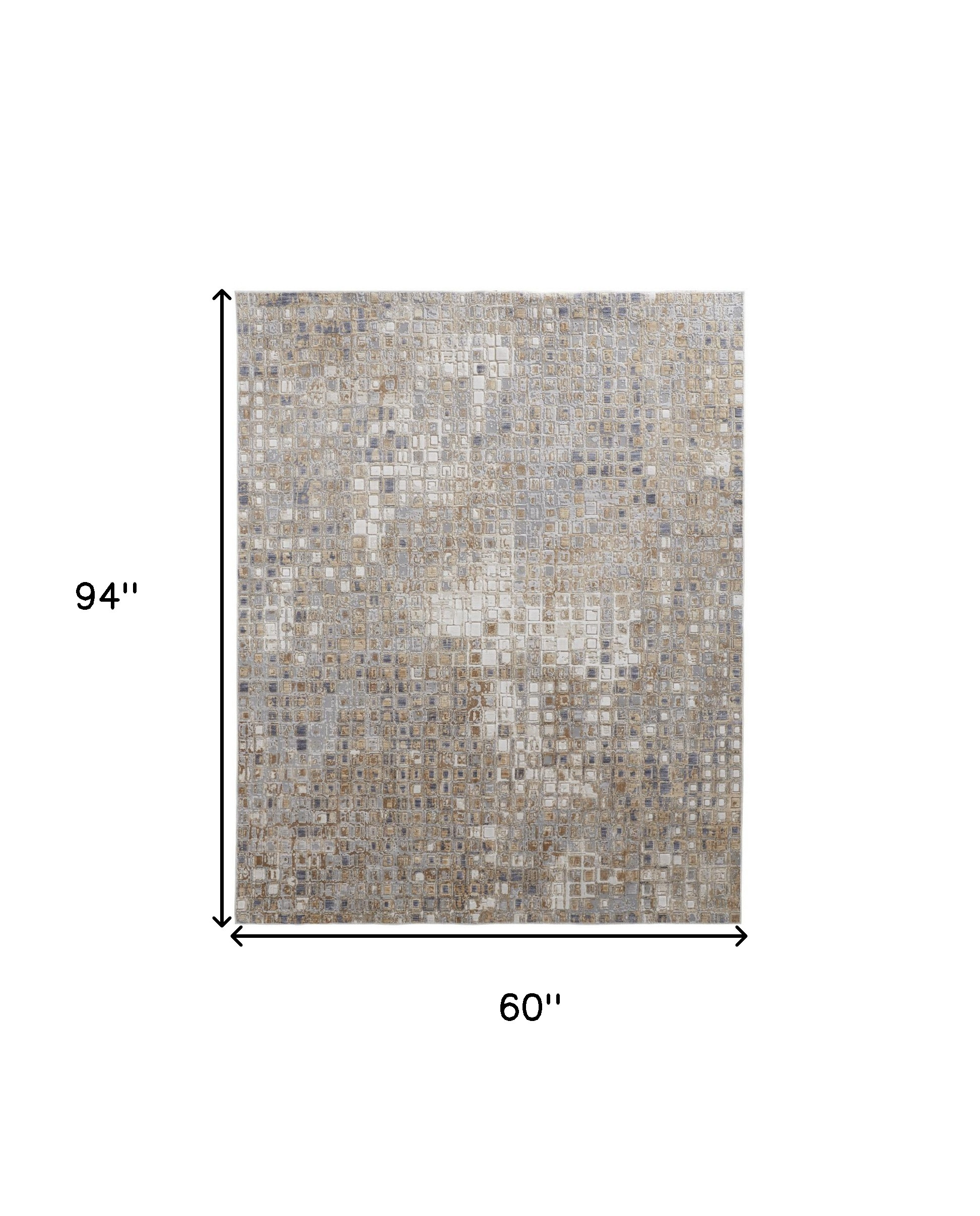 Add great coloration and comfortable texture to your space with this 5-foot x 8-foot tan ivory and blue geometric distressed area rug. Built to last, this rug crafted from polyester fibers is known for its durability and long lasting appeal. Rugs are a great way to showcase your style, hide imperfections, warm your home and reduce noise. 60.00-inch h x 94.00-inch w x 0.28-inch d.