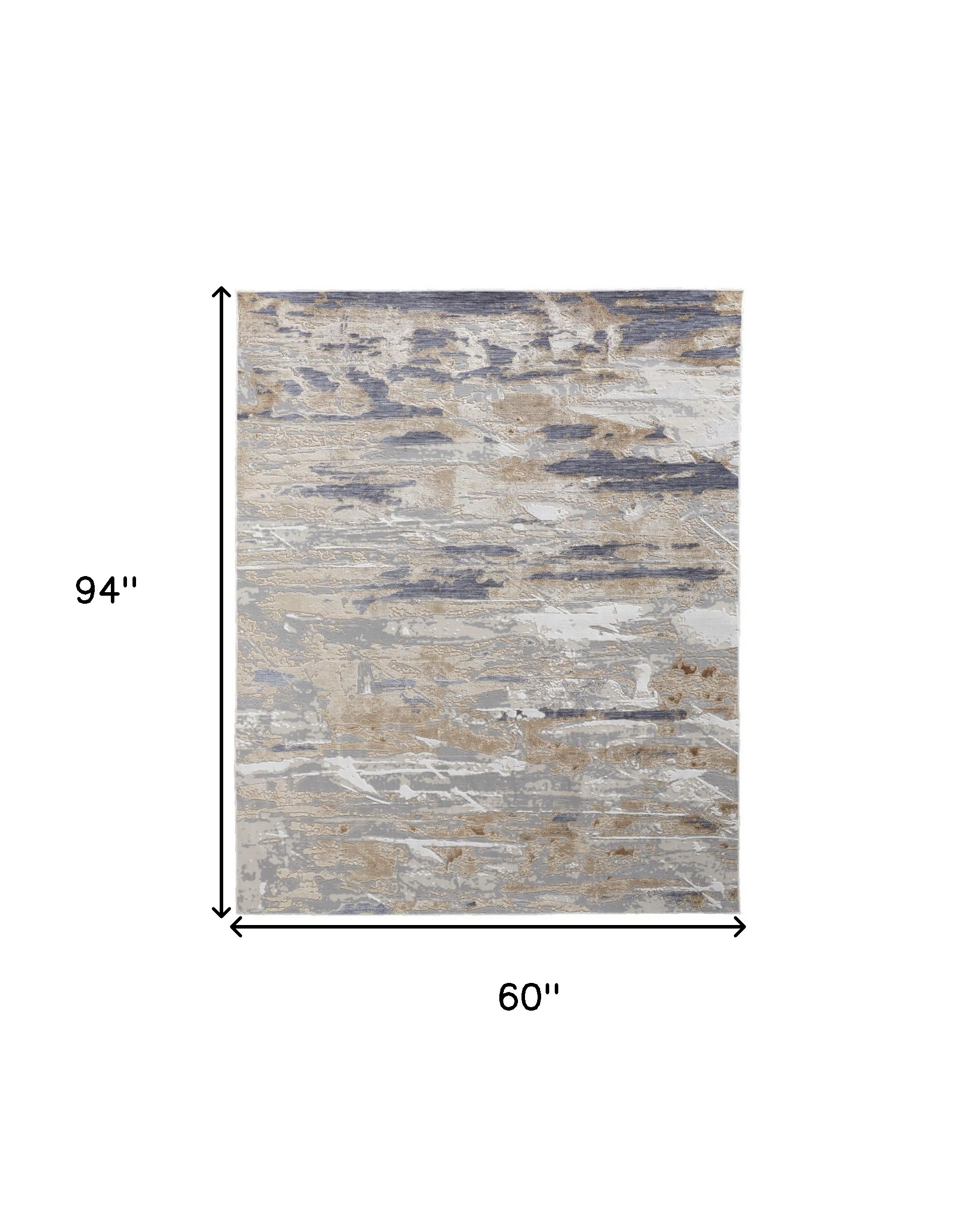 Set an inviting tone in your space with this 5-foot x 8-foot tan ivory and blue abstract distressed area rug. Built to last, this rug crafted from polyester fibers is known for its durability and long lasting appeal. Rugs are a great way to showcase your style, hide imperfections, warm your home and reduce noise. 60.00-inch h x 94.00-inch w x 0.28-inch d.