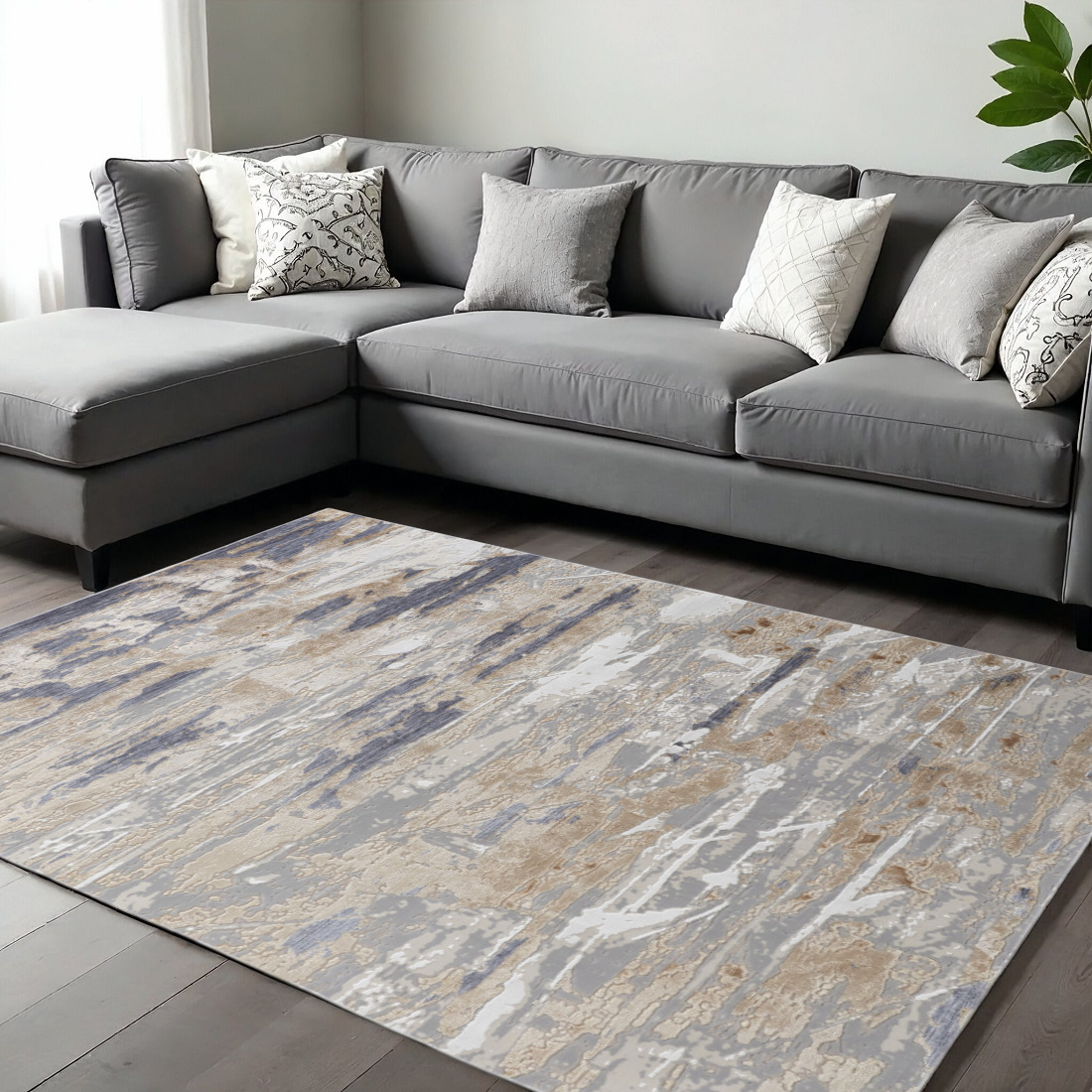 Add great coloration and comfortable texture to your space with this 10-foot x 13-foot tan ivory and blue abstract distressed area rug. Built to last, this rug crafted from polyester fibers is known for its durability and long lasting appeal. Rugs are a great way to showcase your style, hide imperfections, warm your home and reduce noise. 116.00-inch h x 152.00-inch w x 0.28-inch d.