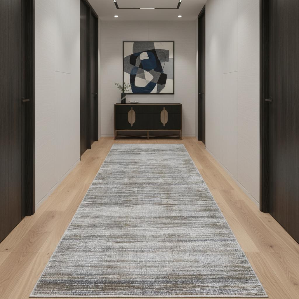 abstract power loom runner rug, power loom runner rug, loom runner rug, 12' taupe silver tan, silver tan abstract power loom |