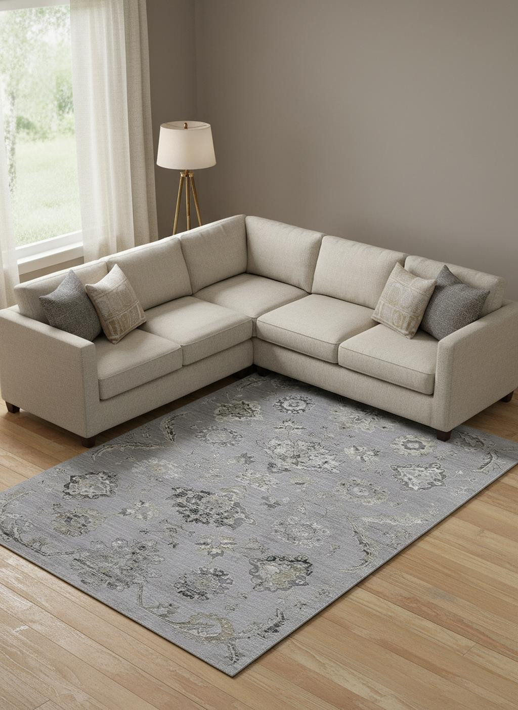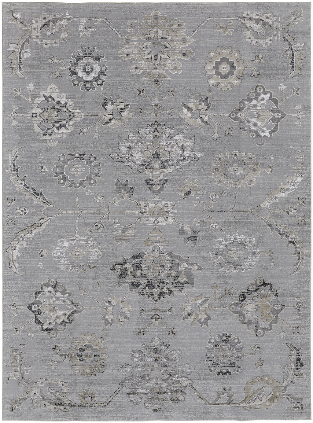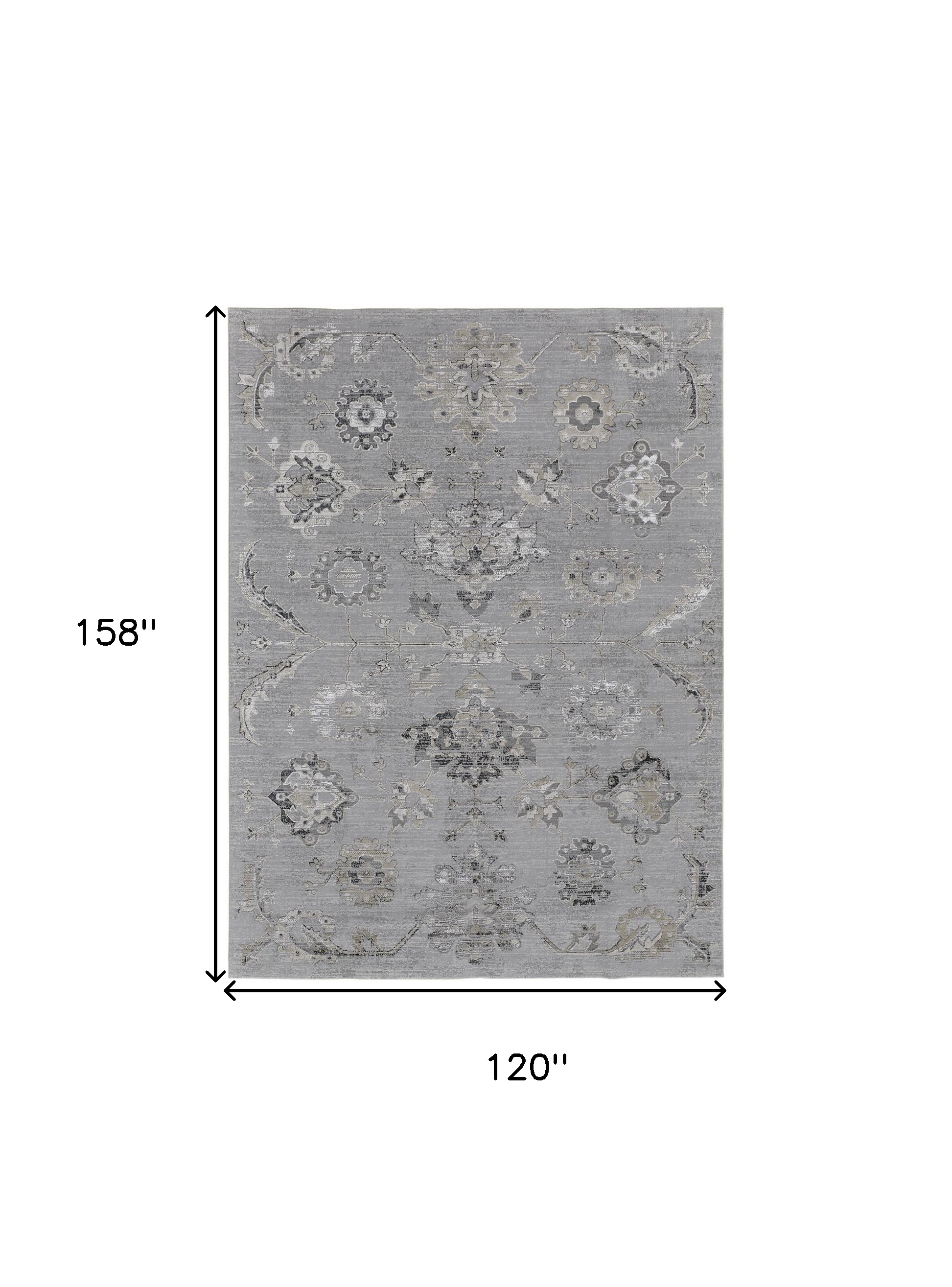 Add some artistry to your room with this 10' x 13' silver and black floral power loom distressed area rug. This rectangle shaped rug features a floral design in silver and black to give it visual interest. A classic shape marries with good looking design for your space This superior Turkish rug represents the highest quality and is built to last. Area Rugs help to give warmth and sense of home to your space. 0.39" H x 120" W x 158" D