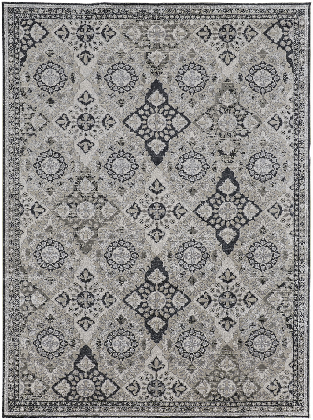 Set an inviting tone in your space with this 12' x 15' gray and black floral power loom area rug. This rectangle shaped rug features a floral design in gray and black to give it visual interest. A classic shape marries with good looking design for your space Made in Turkey, this rug offers high quality combined with good looking designer sensibilities. Place this area rug against a hardwood or tile floor and it will enliven your living space with style and sophistication. 0.39" H x 144" W x 180" D