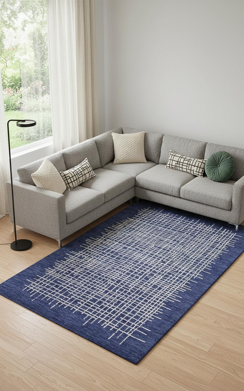 handmade stain resistant area rug, stain resistant area rug, resistant area rug, wool plaid tufted handmade stain, 10' X 14' blue ivory wool |