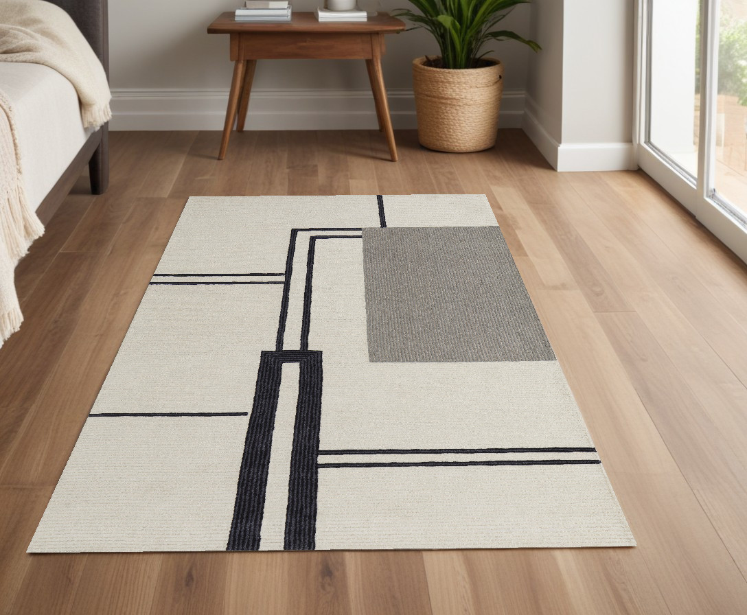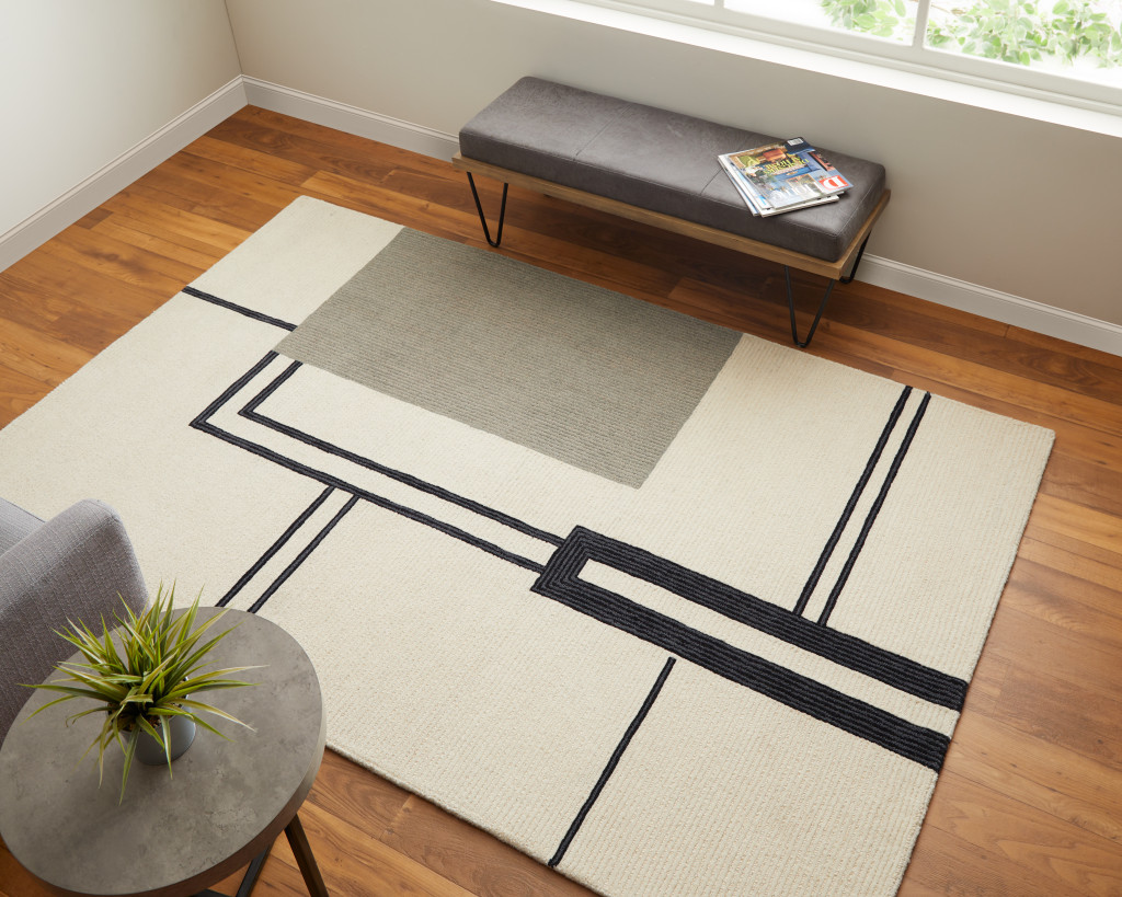 This 4-foot x 6-foot gray and ivory wool abstract geometric hand tufted area rug, is a great way to add warmth to a room. This rectangle shaped rug features a abstract geometric design in gray and ivory to give it visual interest. A classic shape marries with good looking design for your space place this area rug against a hardwood or tile floor and it will enliven your living space with style and sophistication. 42-inch H x 66-inch W x 0.59-inch D