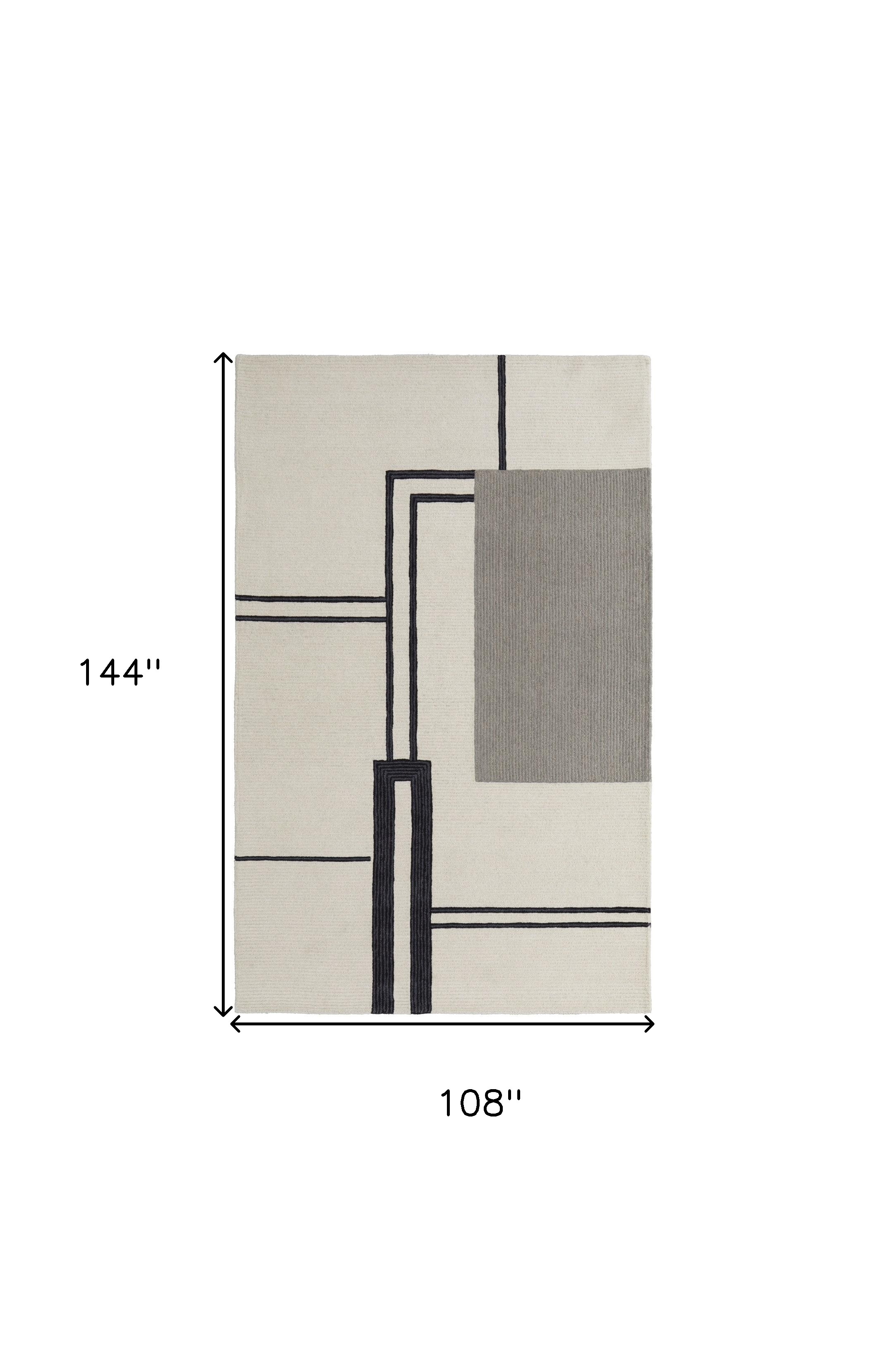 Add great coloration and comfortable texture to your space with this 9-foot x 12-foot gray and ivory wool abstract geometric hand tufted area rug. This rectangle shaped rug features a abstract geometric design in gray and ivory to give it visual interest. A classic shape marries with good looking design for your space area rugs help to give warmth and sense of home to your space. 108-inch H x 144-inch W x 0.59-inch D