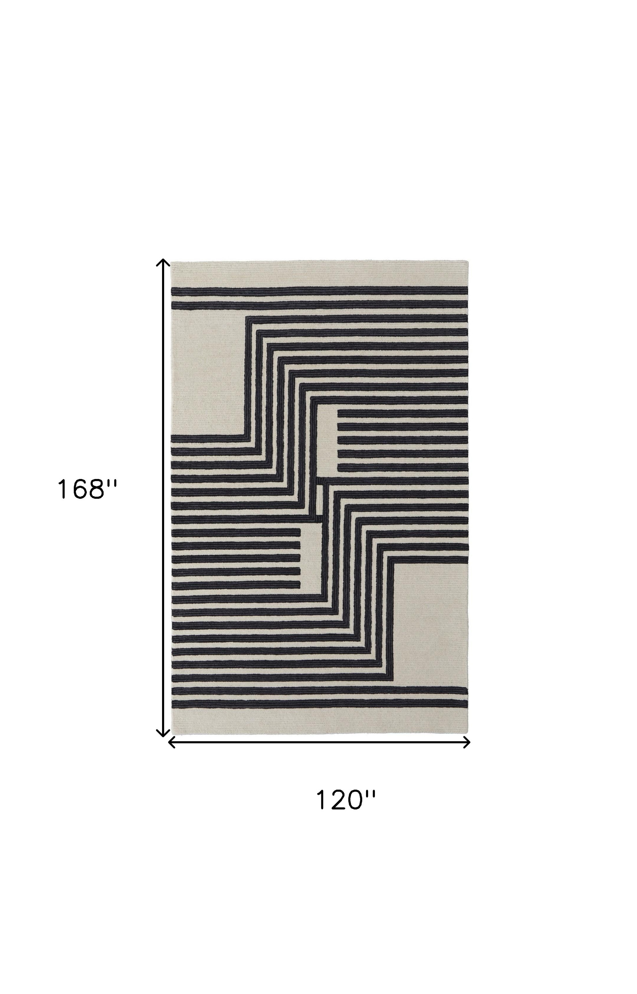 Set an inviting tone in your space with this 10-foot x 14-foot gray and black wool abstract geometric hand tufted area rug. Crafted by skilled artisans, this hand tufted rug is genuine and unique. No two will be exactly alike. Rugs are a great way to showcase your style, hide imperfections, warm your home and reduce noise. This larger sized, modern styled rug is ready to create a focal point or statement piece in your room. 120.00-inch h x 168.00-inch w x 0.59-inch d.