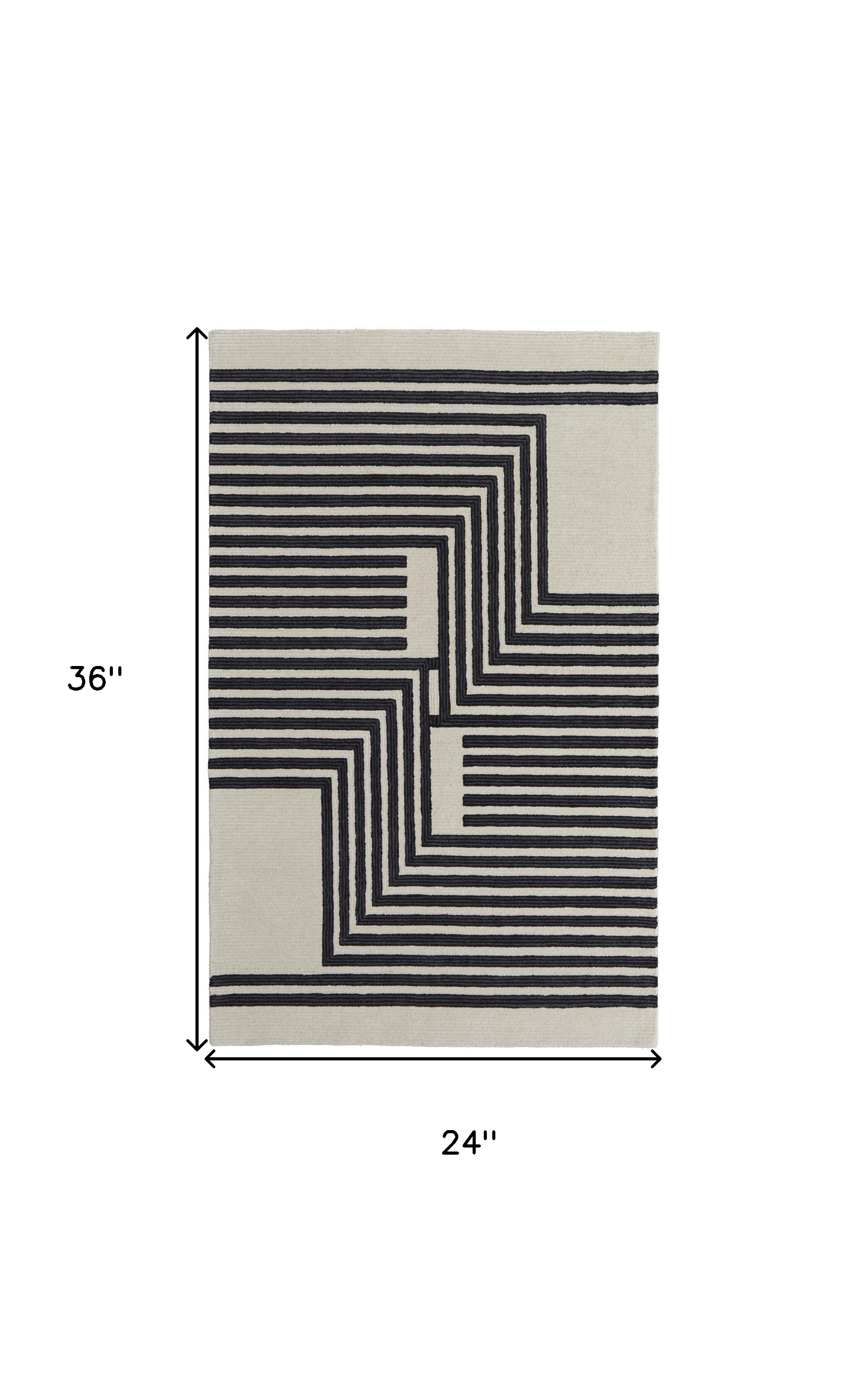 Set an inviting tone in your space with this 2-foot x 3-foot gray and black abstract geometric hand tufted area rug. Ideal for spaces with kids and pets, this rug is stain resistant to help repel dirt and spilled liquids. Crafted by skilled artisans, this hand tufted rug is genuine and unique. No two will be exactly alike. Crafted from wool blend fibers that give this piece premium texture, refinement, and appeal. Rugs are a great way to showcase your style, hide imperfections, warm your home and reduce noise. This smaller sized, mid-century styled rug is just what you need for your walkway, bedside, in front of door, cabinet, refrigerator, or chair. 24.00-inch h x 36.00-inch w x 0.59-inch d.