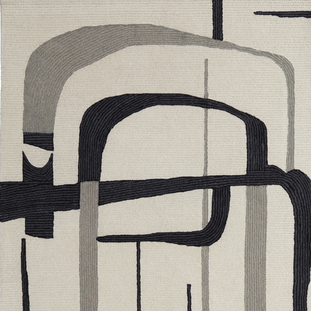 abstract tufted handmade area rug, tufted handmade area rug, handmade area rug, 12' X 15' ivory gray black wool, black wool abstract tufted handmade |