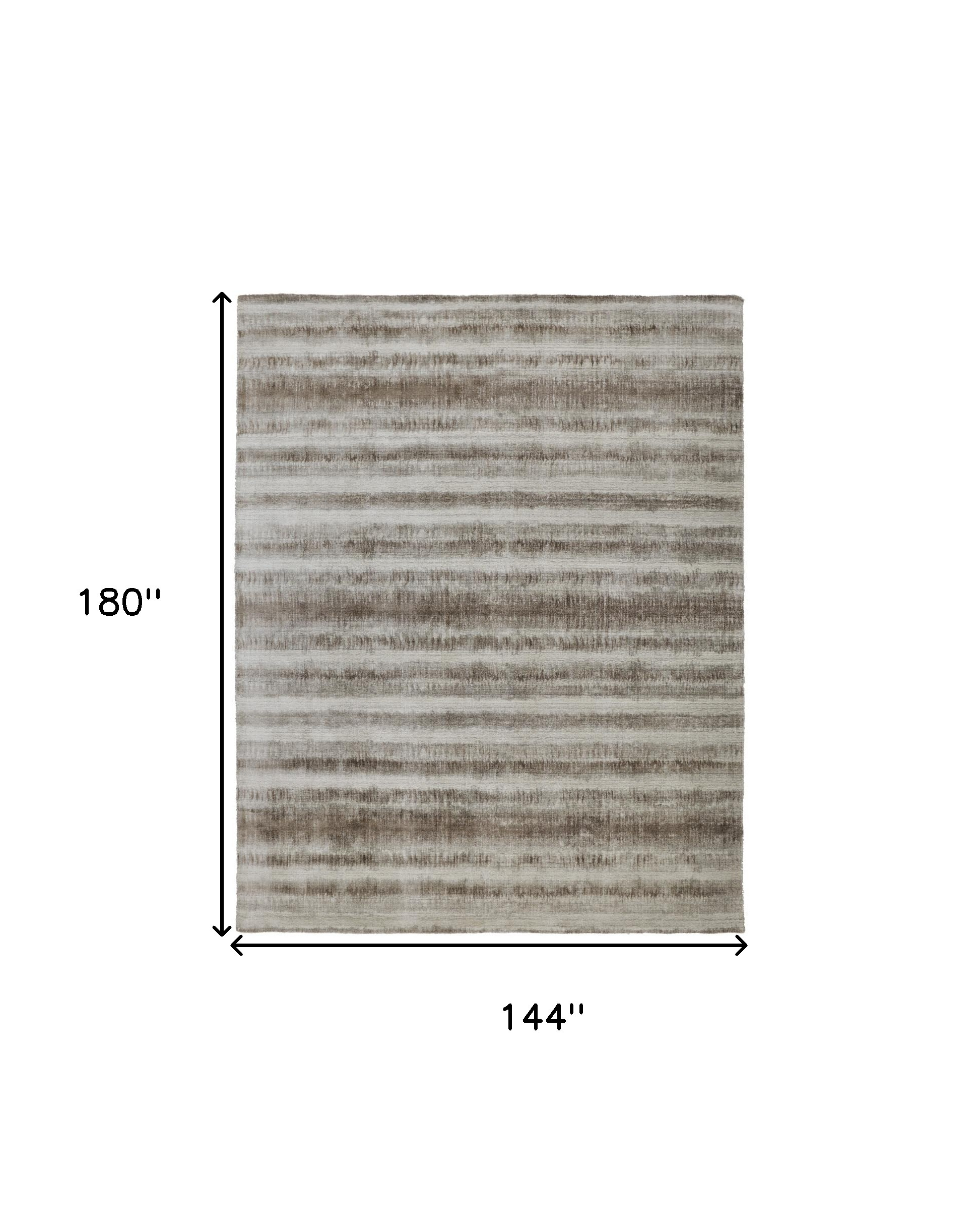 Set an inviting tone in your space with this 12' x 15' tan ivory and brown abstract hand woven area rug. This rectangle shaped rug features a abstract design in tan ivory and brown to give it visual interest. A classic shape marries with good looking design for your space Crafted by skilled artisans, this hand woven rug is genuine and unique. No two will be exactly alike. Place this area rug against a hardwood or tile floor and it will enliven your living space with style and sophistication. 0.4" H x 144" W x 180" D