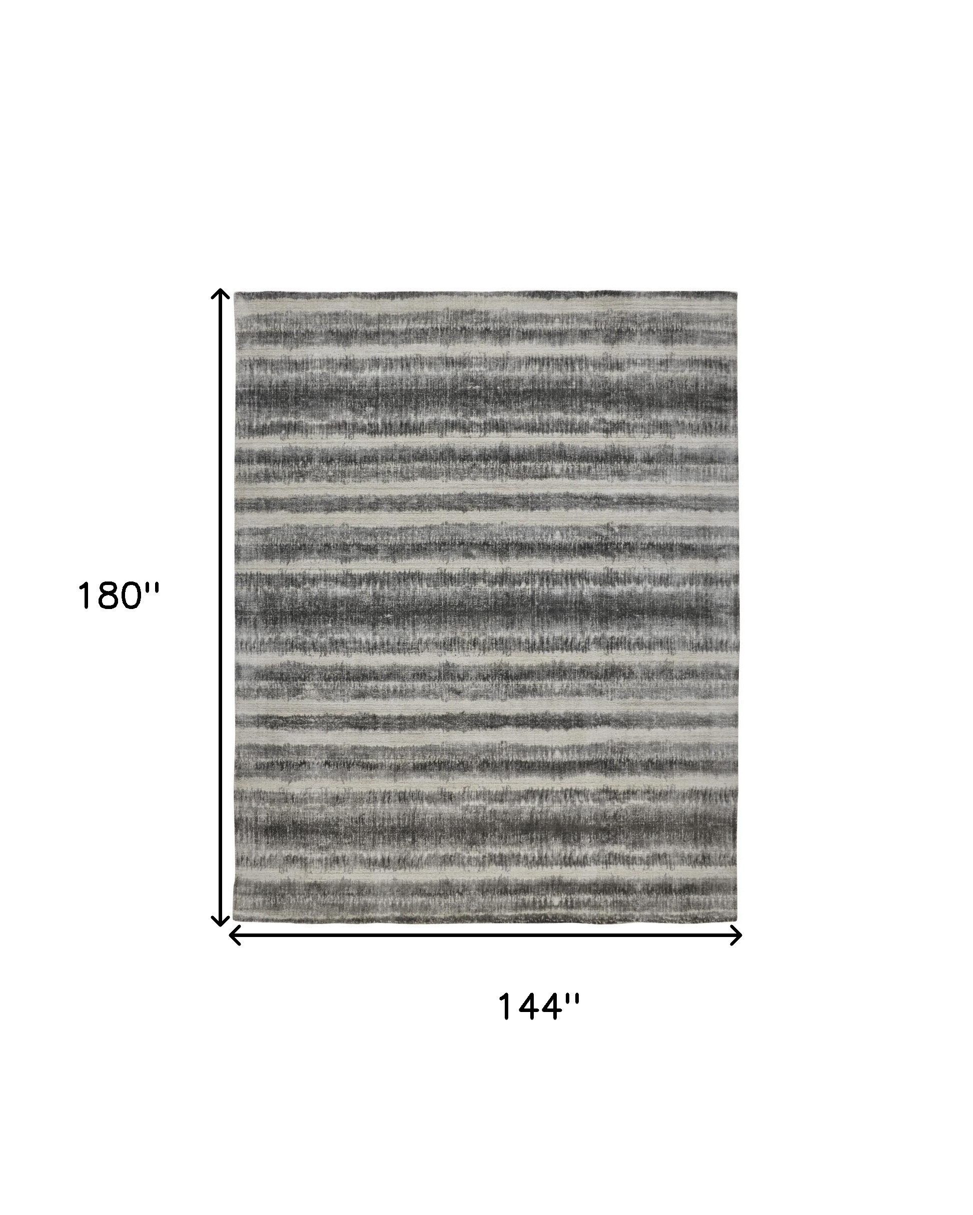Add some artistry to your room with this 12' x 15' gray ivory and black abstract hand woven area rug. This rectangle shaped rug features a abstract design in gray ivory and black to give it visual interest. A classic shape marries with good looking design for your space Crafted by skilled artisans, this hand woven rug is genuine and unique. No two will be exactly alike. Area Rugs help to give warmth and sense of home to your space. 0.4" H x 144" W x 180" D