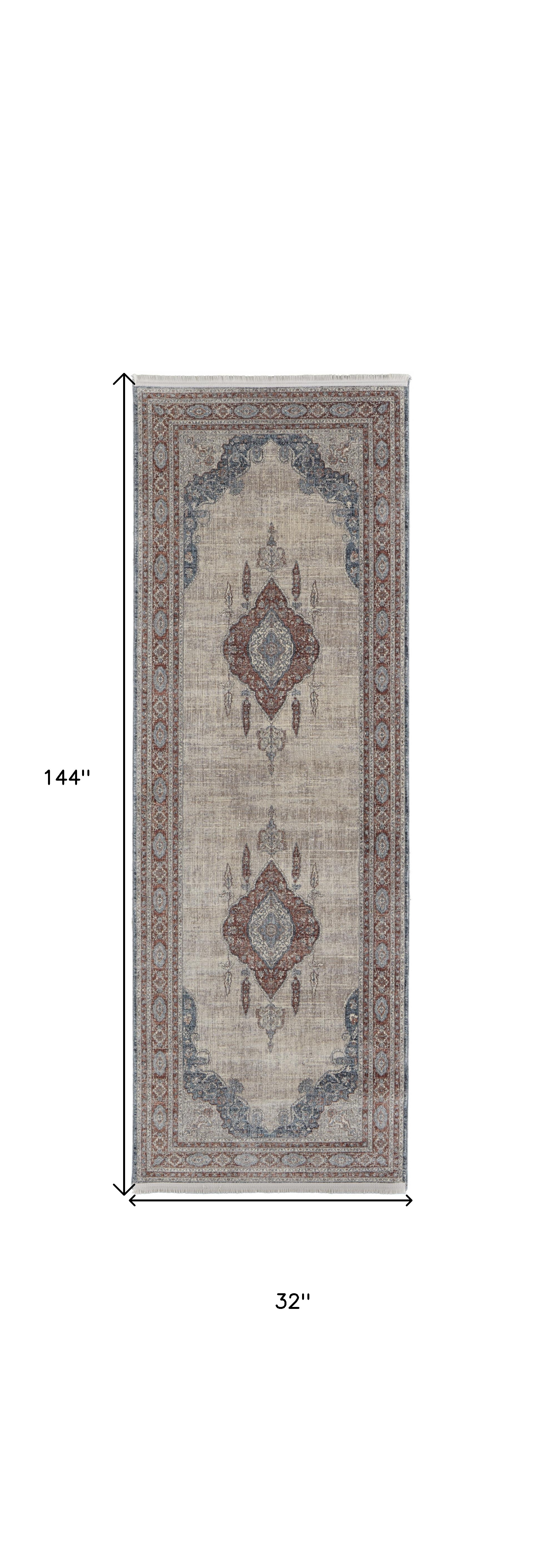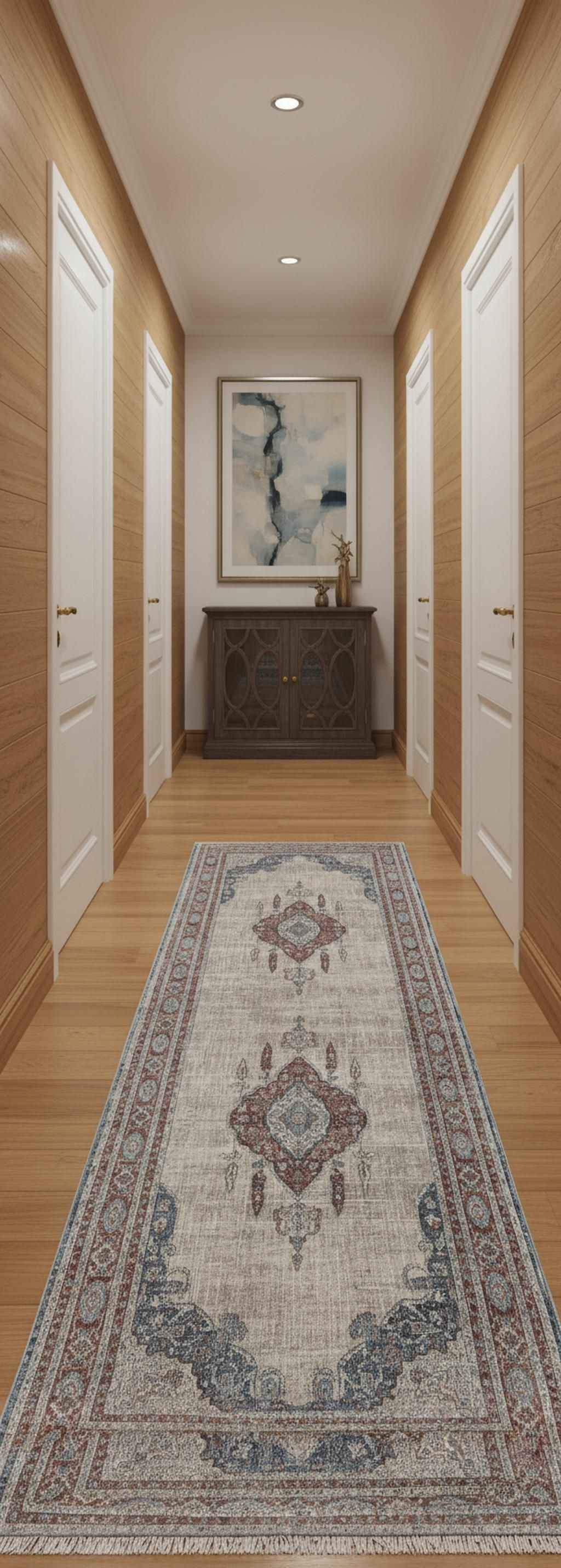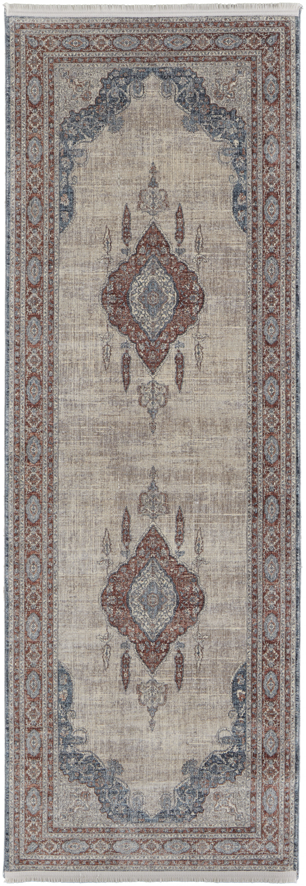 Add some artistry to your room with this 12' gray red and blue floral power loom runner rug. This runner shaped rug features a floral design in gray red and blue to give it visual interest. A classic shape marries with good looking design for your space Made in Turkey, this rug offers high quality combined with good looking designer sensibilities. Ideal for spaces with kids and pets, this rug is stain resistant to help repel stains and spilled liquids. Place this area rug against a hardwood or tile floor and it will enliven your living space with style and sophistication. 0.25" H x 32" W x 144" D