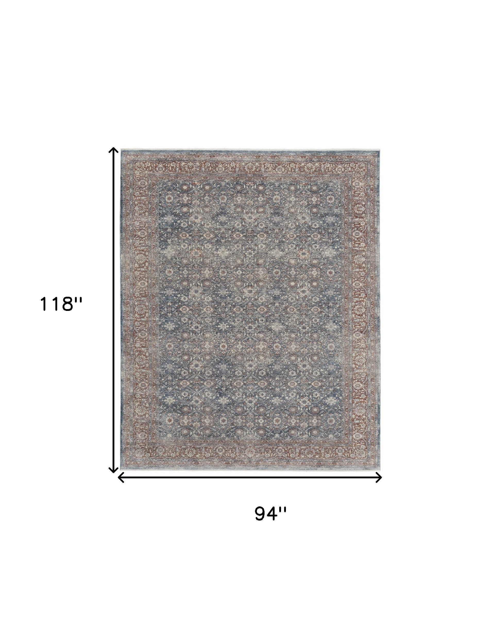 Add great coloration and comfortable texture to your space with this 8-foot x 10-foot blue beige and red floral area rug. Ideal for spaces with kids and pets, this rug is stain resistant to help repel dirt and spilled liquids. Built to last, this rug crafted from polyester fibers is known for its durability and long lasting appeal. Rugs are a great way to showcase your style, hide imperfections, warm your home and reduce noise. 94.00-inch h x 118.00-inch w x 0.25-inch d.