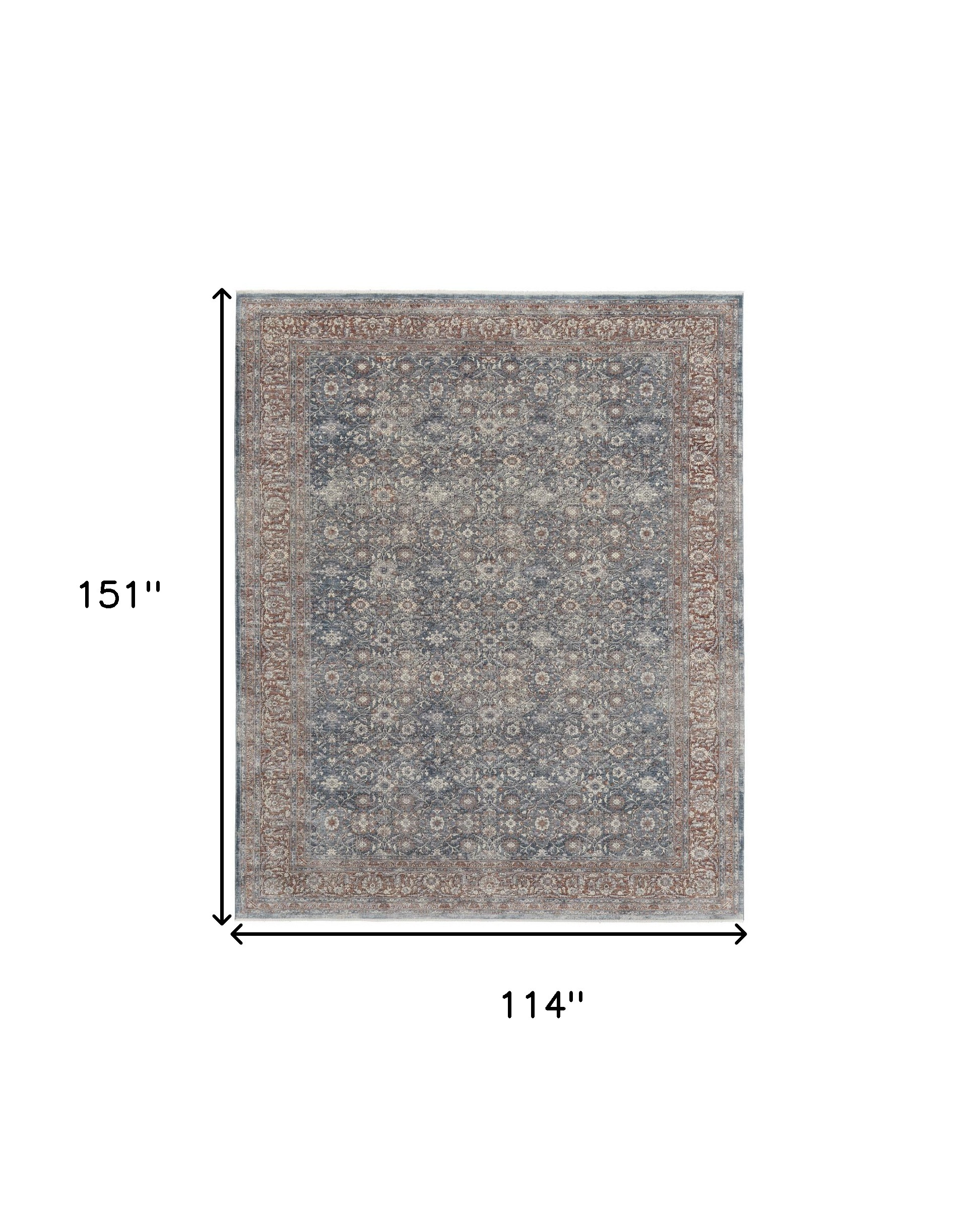 This 10-foot x 13-foot blue beige and red floral area rug, is a great way to add warmth to a room. Ideal for spaces with kids and pets, this rug is stain resistant to help repel dirt and spilled liquids. Built to last, this rug crafted from polyester fibers is known for its durability and long lasting appeal. Rugs are a great way to showcase your style, hide imperfections, warm your home and reduce noise. 114.00-inch h x 151.00-inch w x 0.25-inch d.