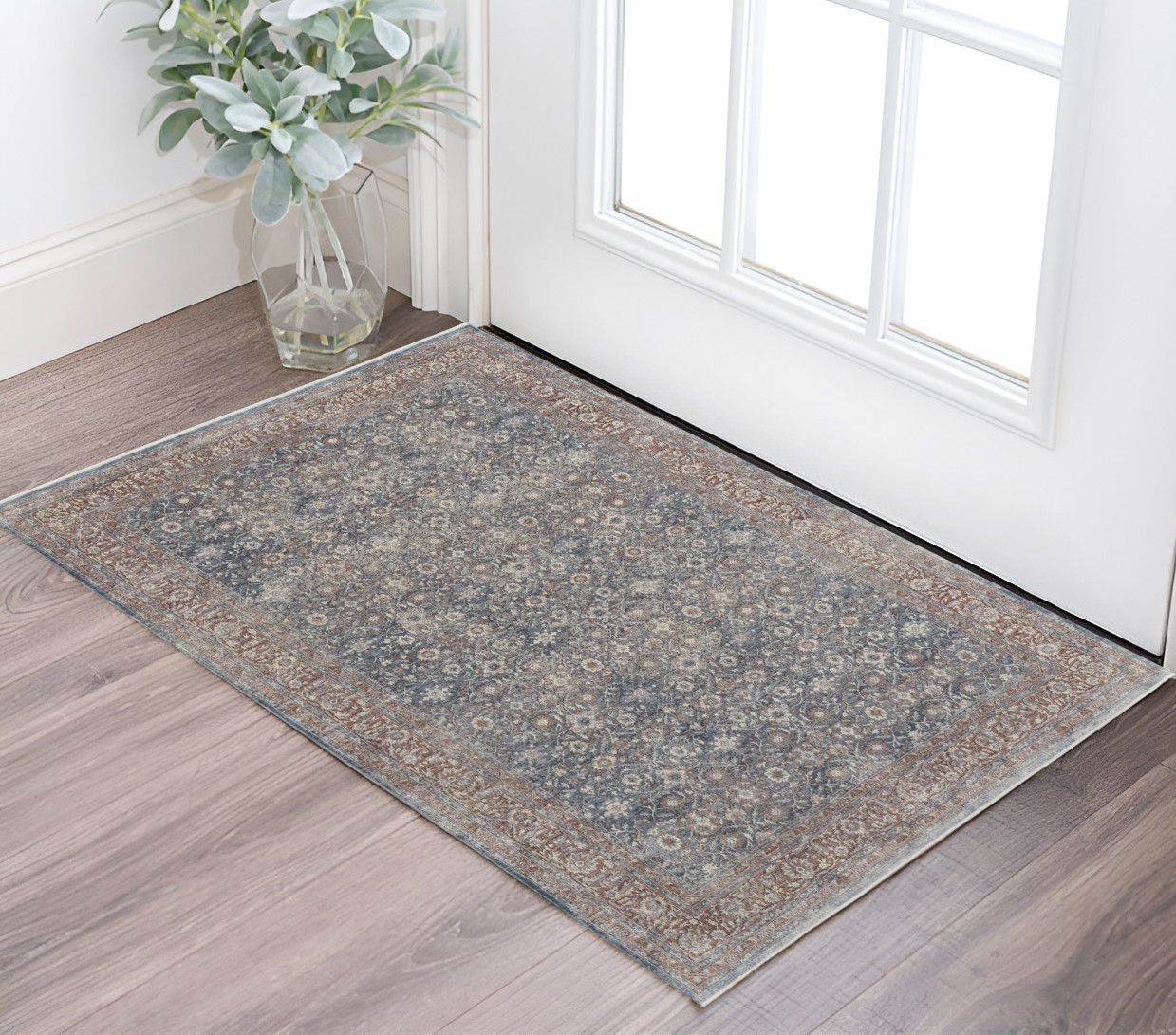 Set an inviting tone in your space with this 2-foot x 3-foot blue beige and red floral area rug. Ideal for spaces with kids and pets, this rug is stain resistant to help repel dirt and spilled liquids. Built to last, this rug crafted from polyester fibers is known for its durability and long lasting appeal. Rugs are a great way to showcase your style, hide imperfections, warm your home and reduce noise. 24.00-inch h x 36.00-inch w x 0.25-inch d.