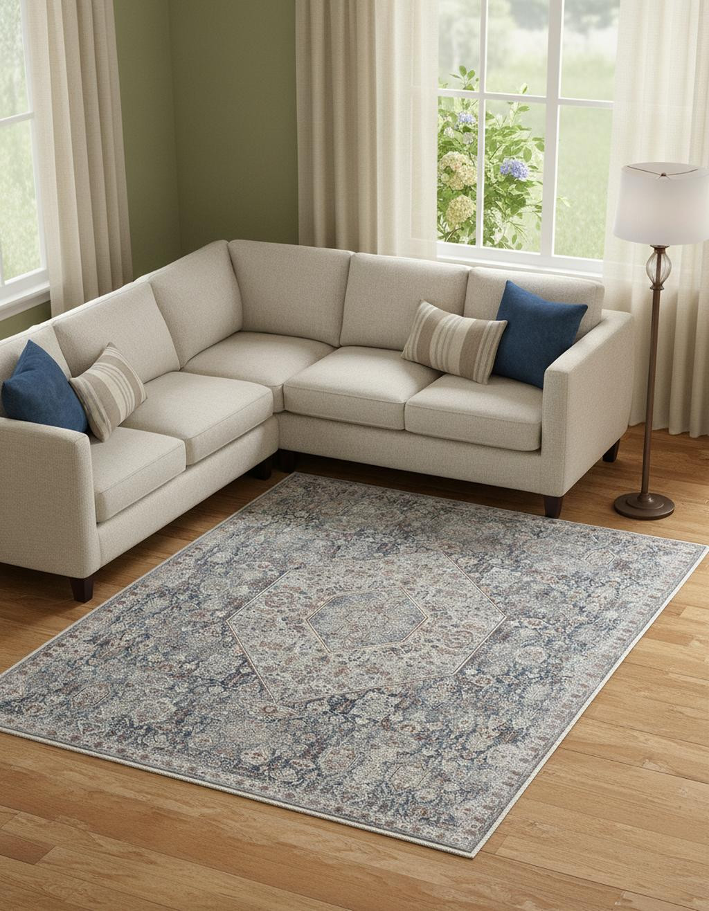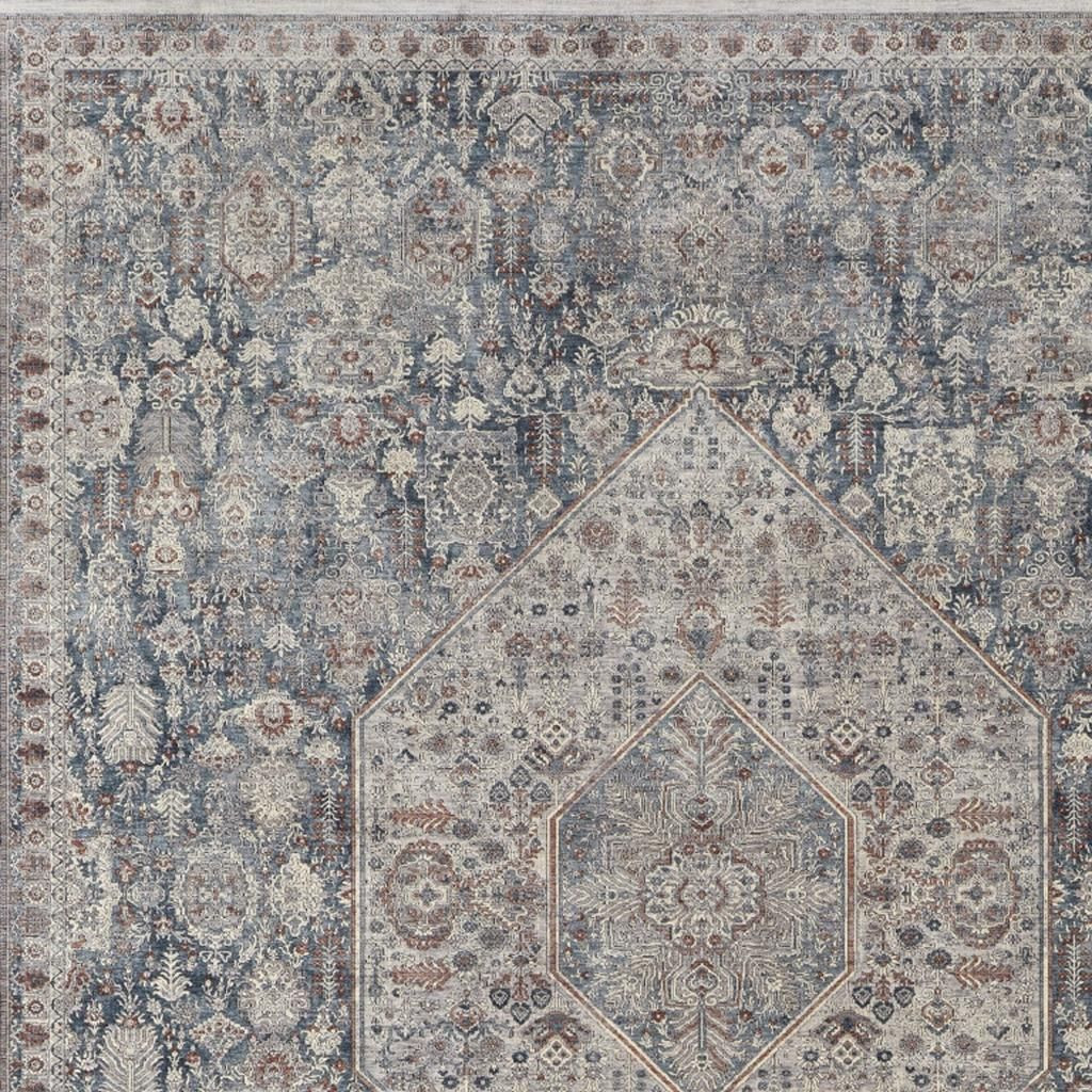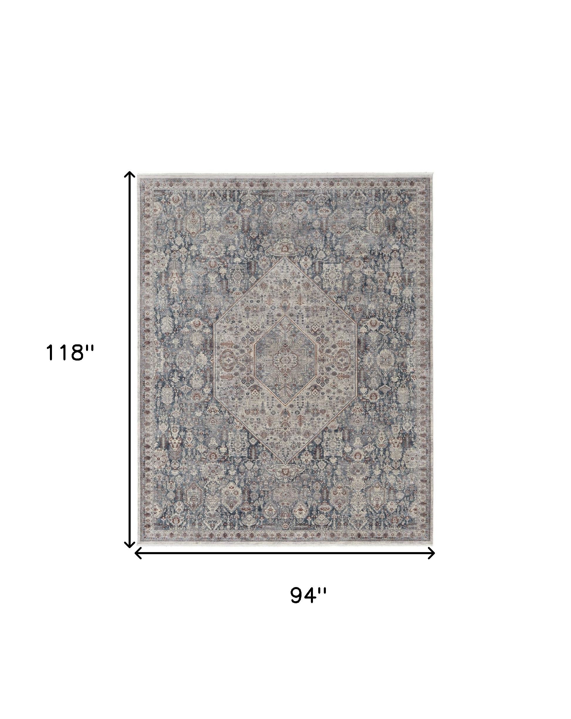 Add great coloration and comfortable texture to your space with this 8' x 10' blue and ivory floral power loom stain resistant area rug. This rectangle shaped rug features a floral design in blue and ivory to give it visual interest. A classic shape marries with good looking design for your space This superior Turkish rug represents the highest quality and is built to last. Ideal for spaces with kids and pets, this rug is stain resistant to help repel stains and spilled liquids. Place this area rug against a hardwood or tile floor and it will enliven your living space with style and sophistication. 0.25" H x 94" W x 118" D