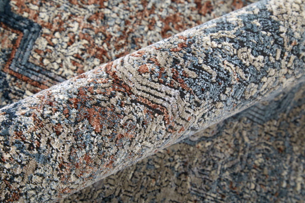 Add some artistry to your room with this 7-foot x 10-foot blue red and gray floral area rug. Ideal for spaces with kids and pets, this rug is stain resistant to help repel dirt and spilled liquids. Built to last, this rug crafted from polyester fibers is known for its durability and long lasting appeal. Rugs are a great way to showcase your style, hide imperfections, warm your home and reduce noise. 79.00-inch h x 118.00-inch w x 0.25-inch d.