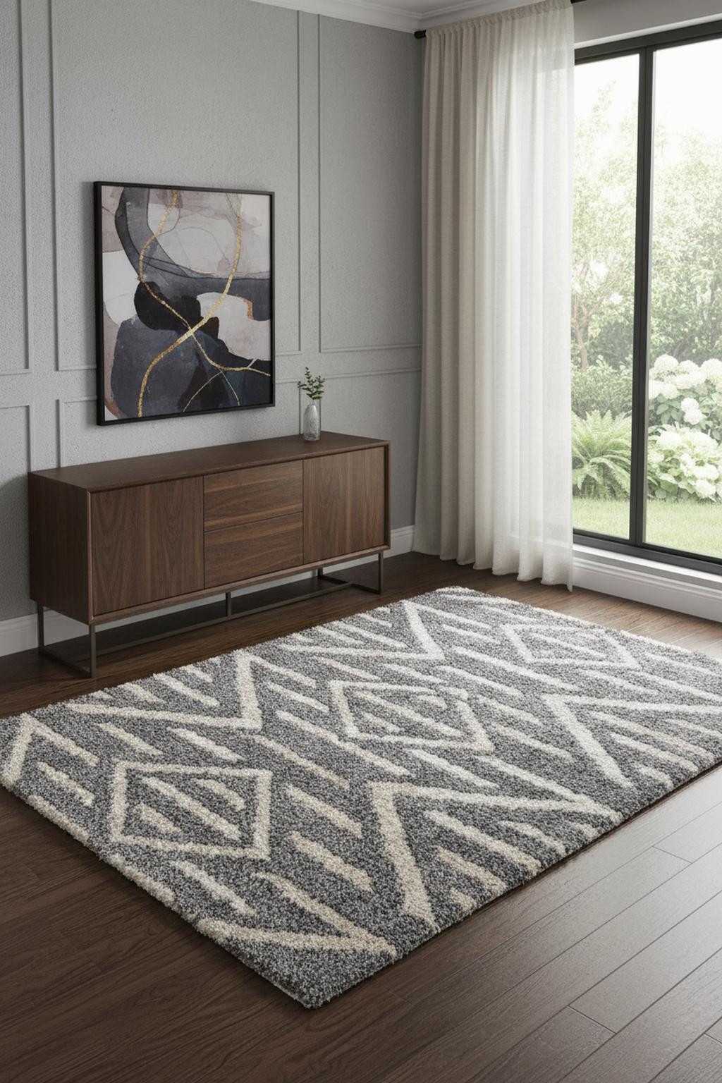 Add some artistry to your room with this 4' x 6' gray and ivory geometric power loom stain resistant area rug. This rectangle shaped rug features a geometric design in gray and ivory to give it visual interest. A classic shape marries with good looking design for your space This superior Turkish rug represents the highest quality and is built to last. Ideal for spaces with kids and pets, this rug is stain resistant to help repel stains and spilled liquids. Place this area rug against a hardwood or tile floor and it will enliven your living space with style and sophistication. 1.29" H x 48" W x 72" D