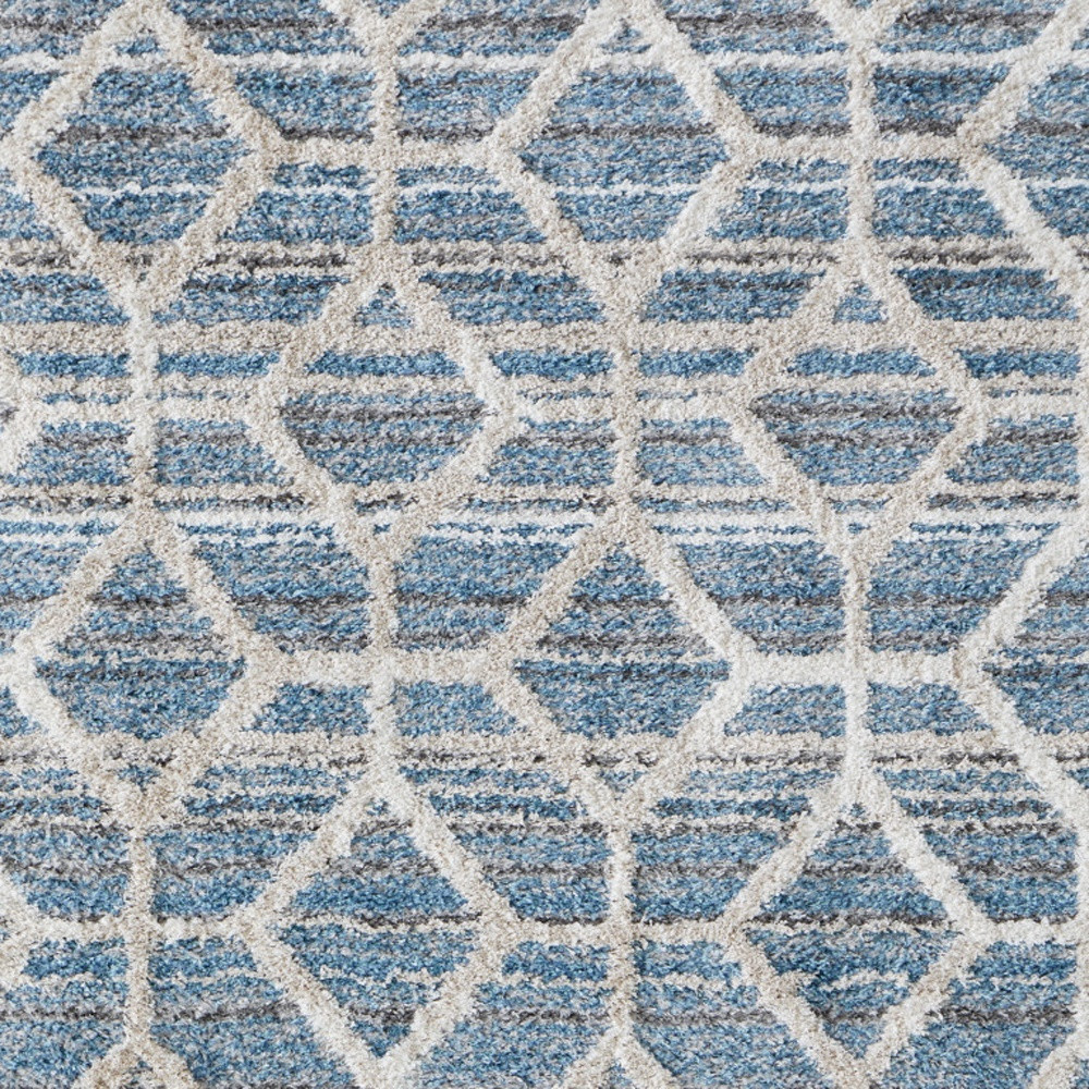 This 4' x 6' blue and ivory geometric power loom stain resistant area rug, is a great way to add warmth to a room. This rectangle shaped rug features a geometric design in blue and ivory to give it visual interest. A classic shape marries with good looking design for your space Made in Turkey, this rug offers high quality combined with good looking designer sensibilities. Ideal for spaces with kids and pets, this rug is stain resistant to help repel stains and spilled liquids. Place this area rug against a hardwood or tile floor and it will enliven your living space with style and sophistication. 1.29" H x 48" W x 72" D