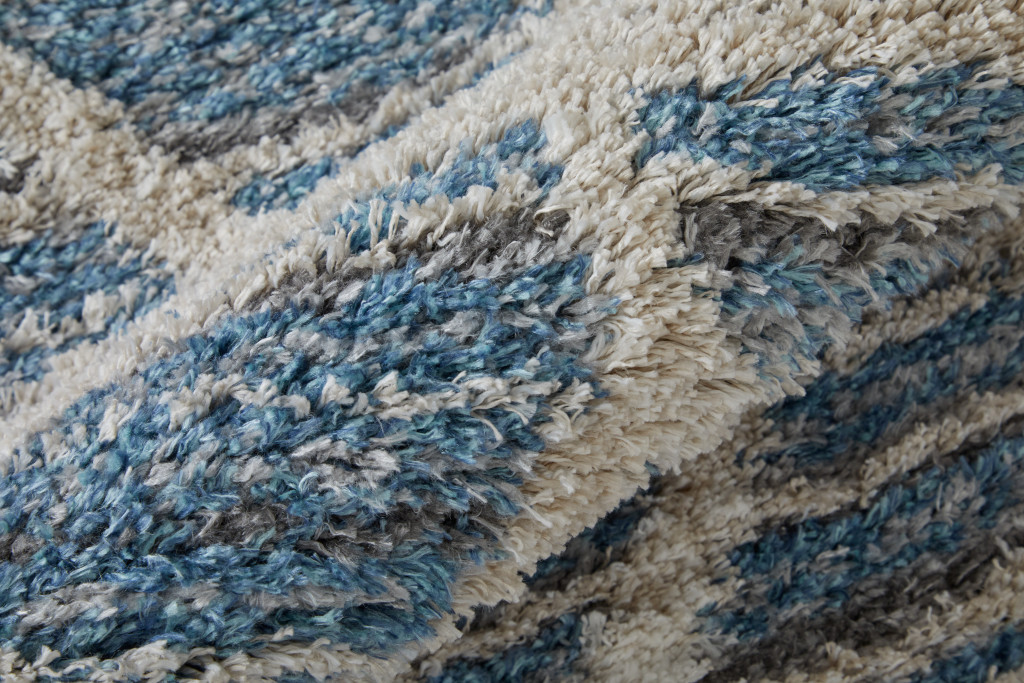 Add some artistry to your room with this 5' x 8' blue and ivory geometric power loom stain resistant area rug. This rectangle shaped rug features a geometric design in blue and ivory to give it visual interest. A classic shape marries with good looking design for your space This superior Turkish rug represents the highest quality and is built to last. Ideal for spaces with kids and pets, this rug is stain resistant to help repel stains and spilled liquids. Area Rugs help to give warmth and sense of home to your space. 1.29" H x 60" W x 96" D