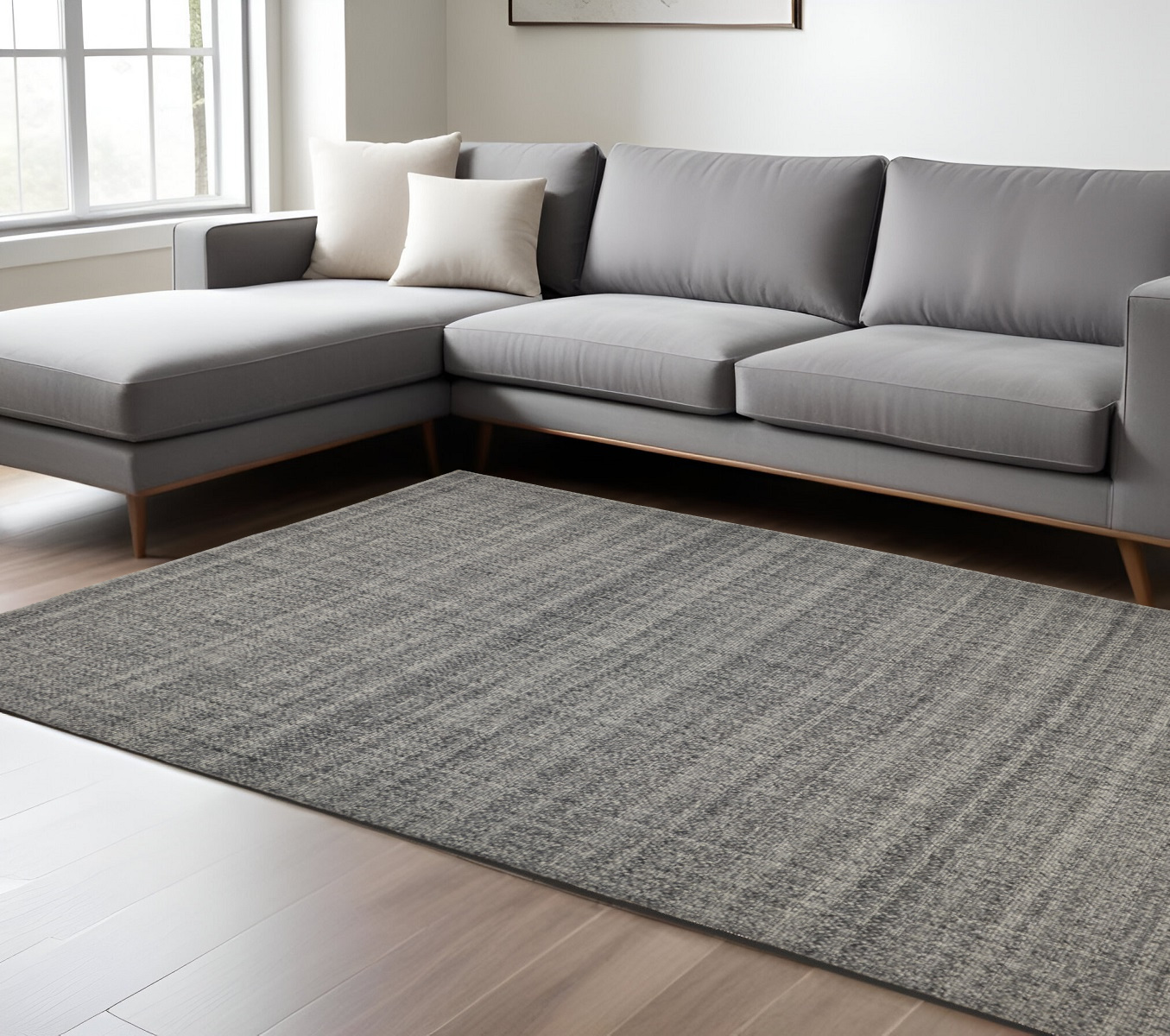 This 8' x 10' gray and ivory hand woven area rug, is a great way to add warmth to a room. This rectangle shaped rug flaunts a gray and ivory color that will be a great way to accent your space. Solid colors are versatile and will blend with any existing decor style. Crafted by skilled artisans, this hand woven rug is genuine and unique. No two will be exactly alike. Place this area rug against a hardwood or tile floor and it will enliven your living space with style and sophistication. 0.25" H x 96" W x 120" D
