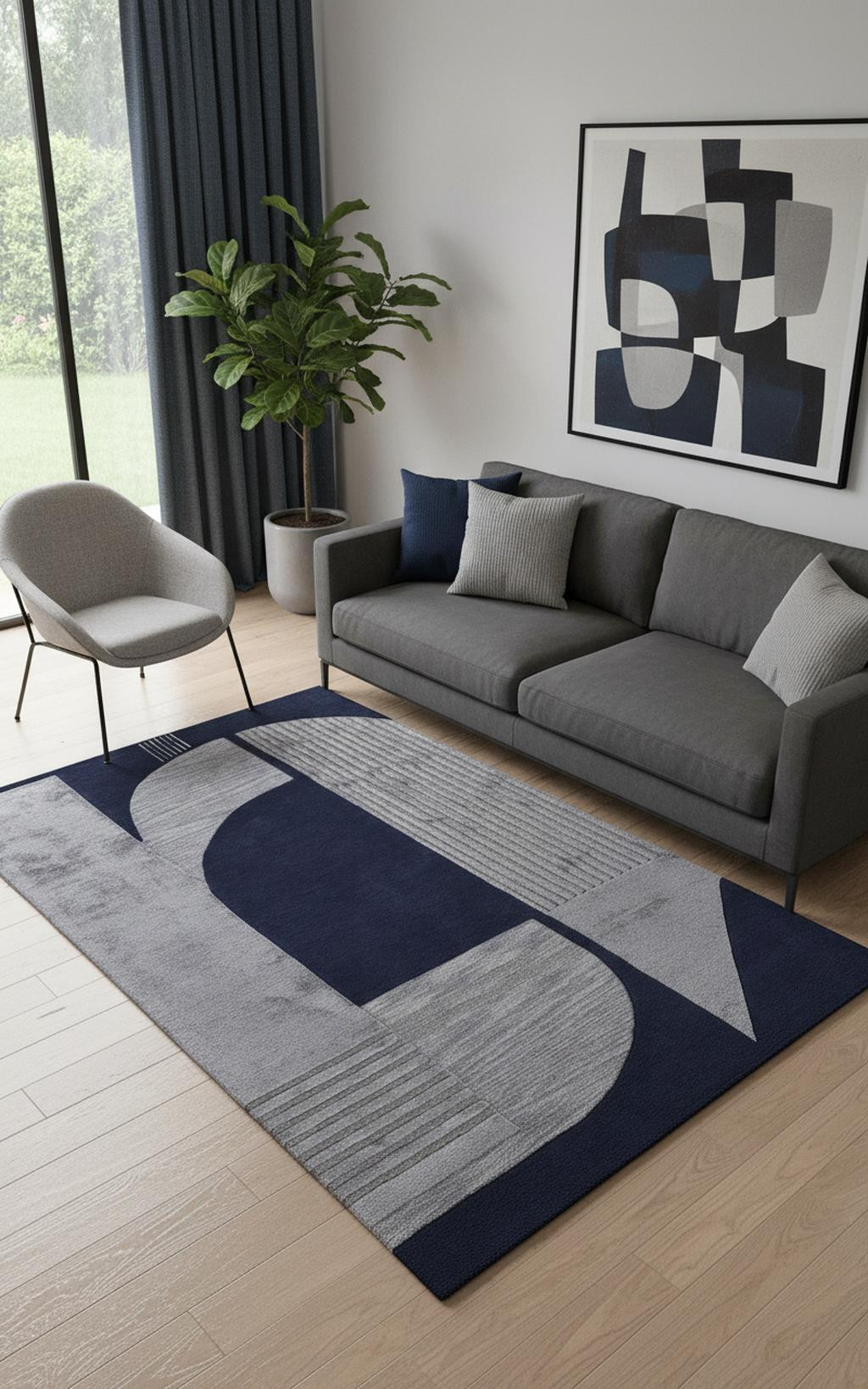 geometric tufted handmade area rug, tufted handmade area rug, handmade area rug, wool geometric tufted handmade area, blue silver wool geometric tufted |