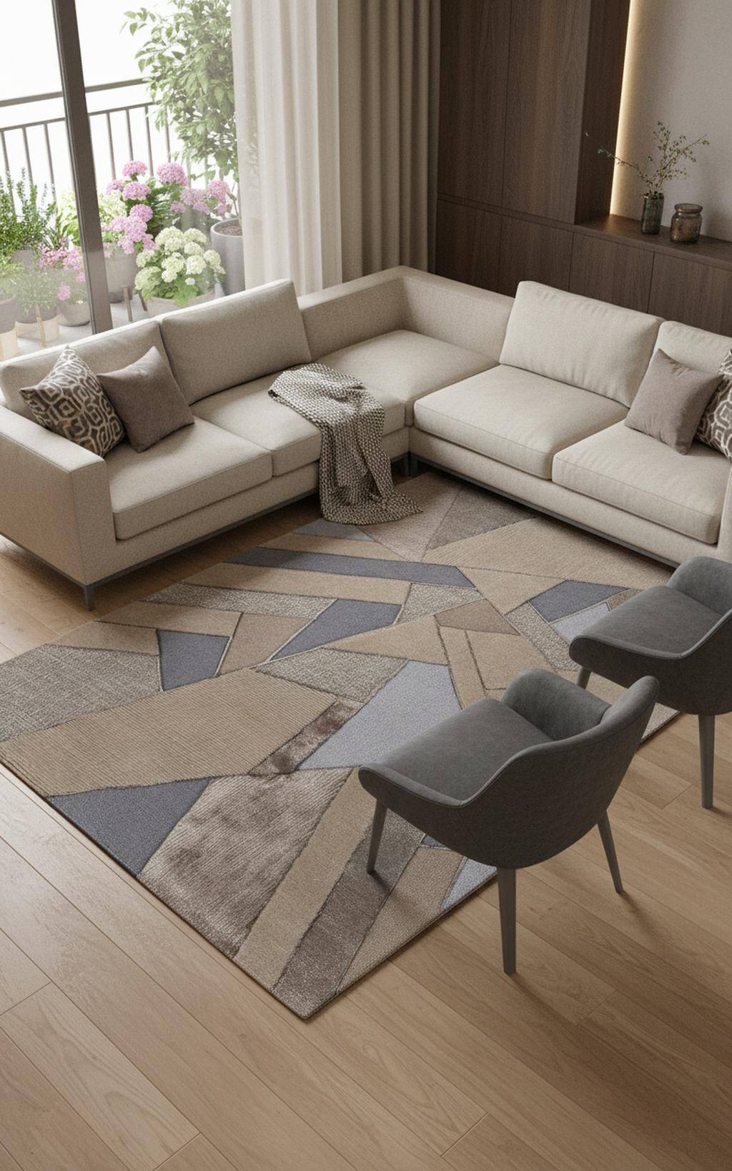 geometric tufted handmade area rug, tufted handmade area rug, handmade area rug, wool geometric tufted handmade area, 10' X 14' tan brown blue wool |