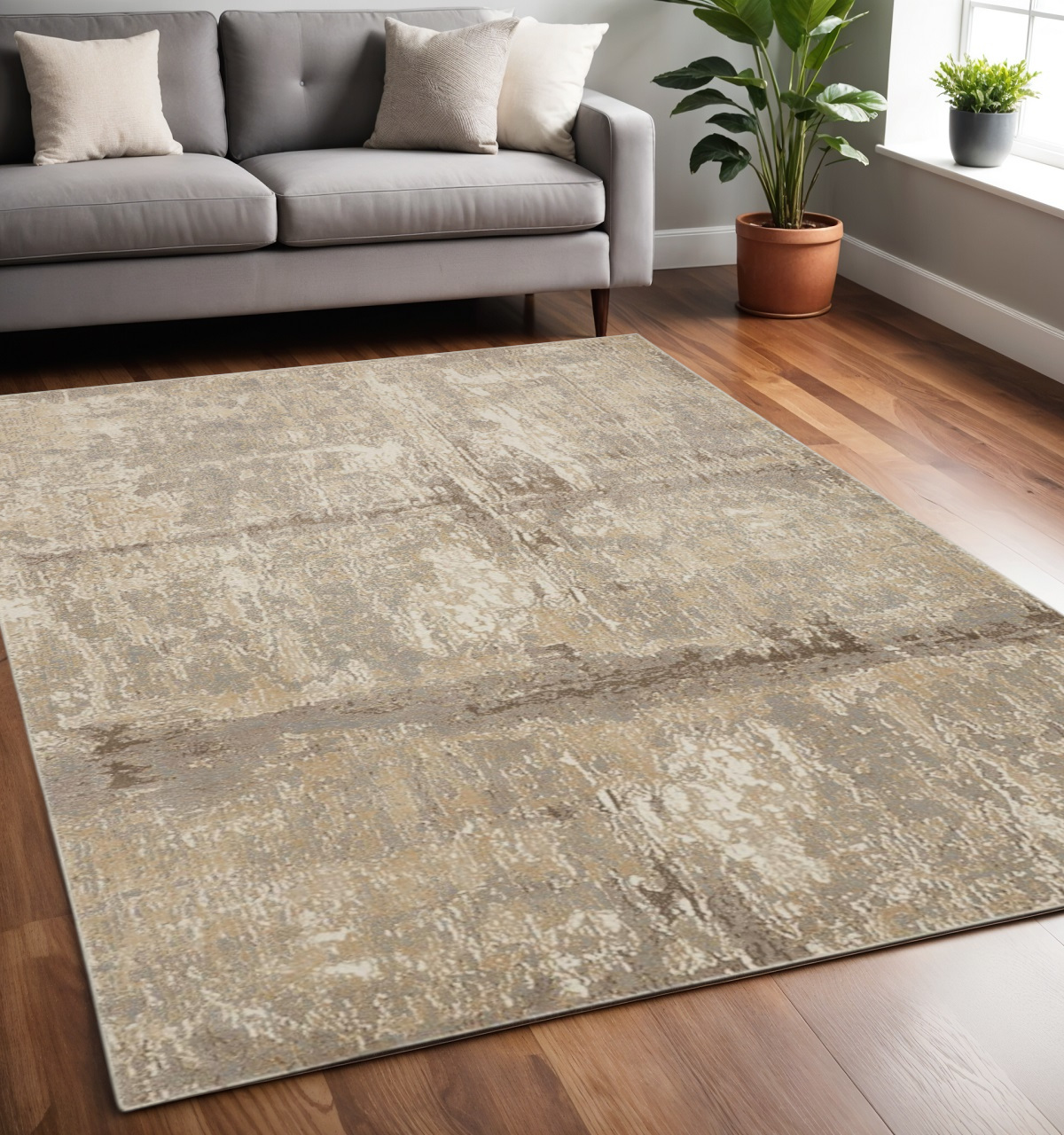 Set an inviting tone in your space with this 5-foot x 8-foot tan ivory and brown abstract area rug. This rectangle-shaped rug is machine woven from soft viscose, ensuring both comfort and durability. With a fade-resistant quality, it maintains its vibrant look over time, making it ideal for high-traffic areas. The latex backing provides excellent grip on various surfaces, while the recommended rug pad adds an extra layer of cushioning. Perfect for enhancing your decor, it effortlessly complements a range of interior styles. 60.00-inch h x 90.00-inch w x 0.39-inch d.