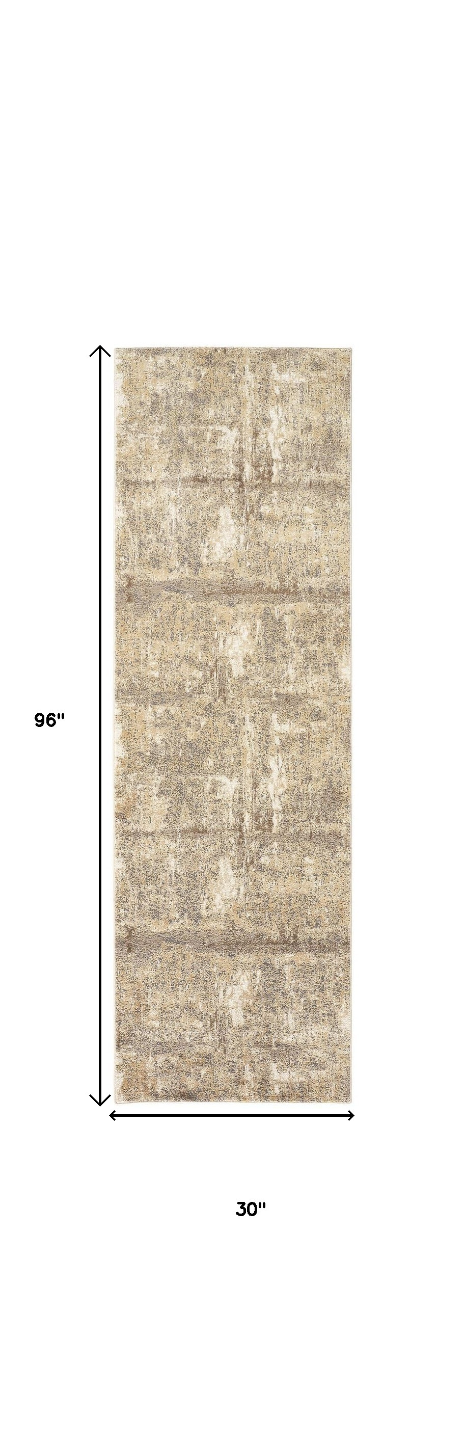 Add some artistry to your room with this 8-foot tan ivory and brown abstract distressed runner rug. Built to last, this rug crafted from viscose and polyester fibers is known for its durability and long lasting appeal. Rugs are a great way to showcase your style, hide imperfections, warm your home and reduce noise. This contemporary style runner makes a great accent for the hallway, in front of cabinets, in the laundry room, or any other space you need a narrow and long rug. 30.00-inch h x 96.00-inch w x 0.39-inch d.