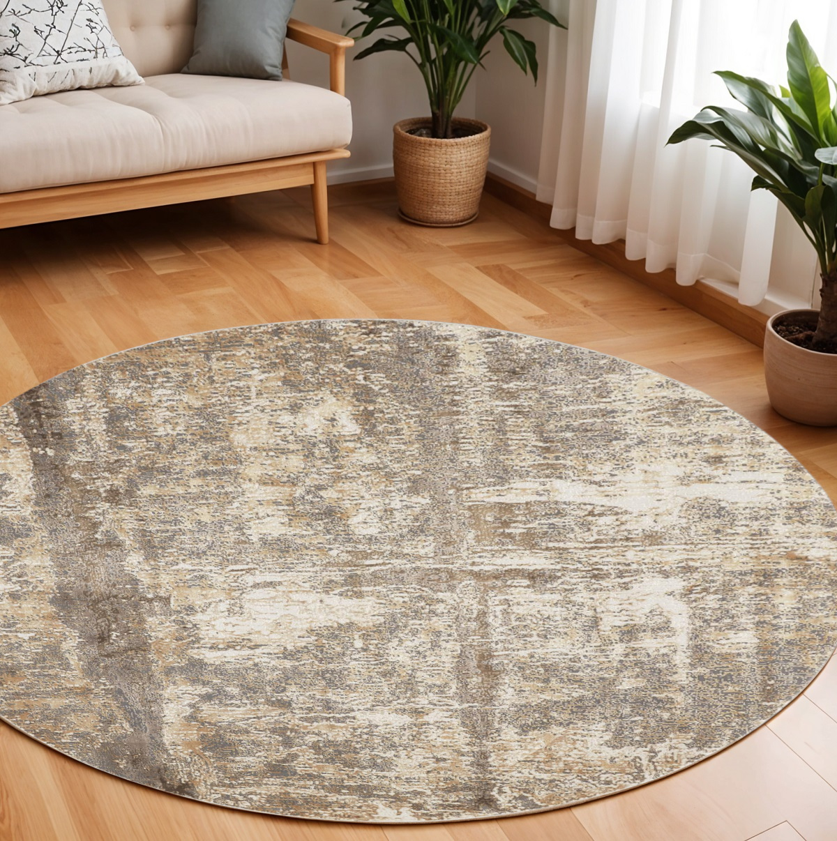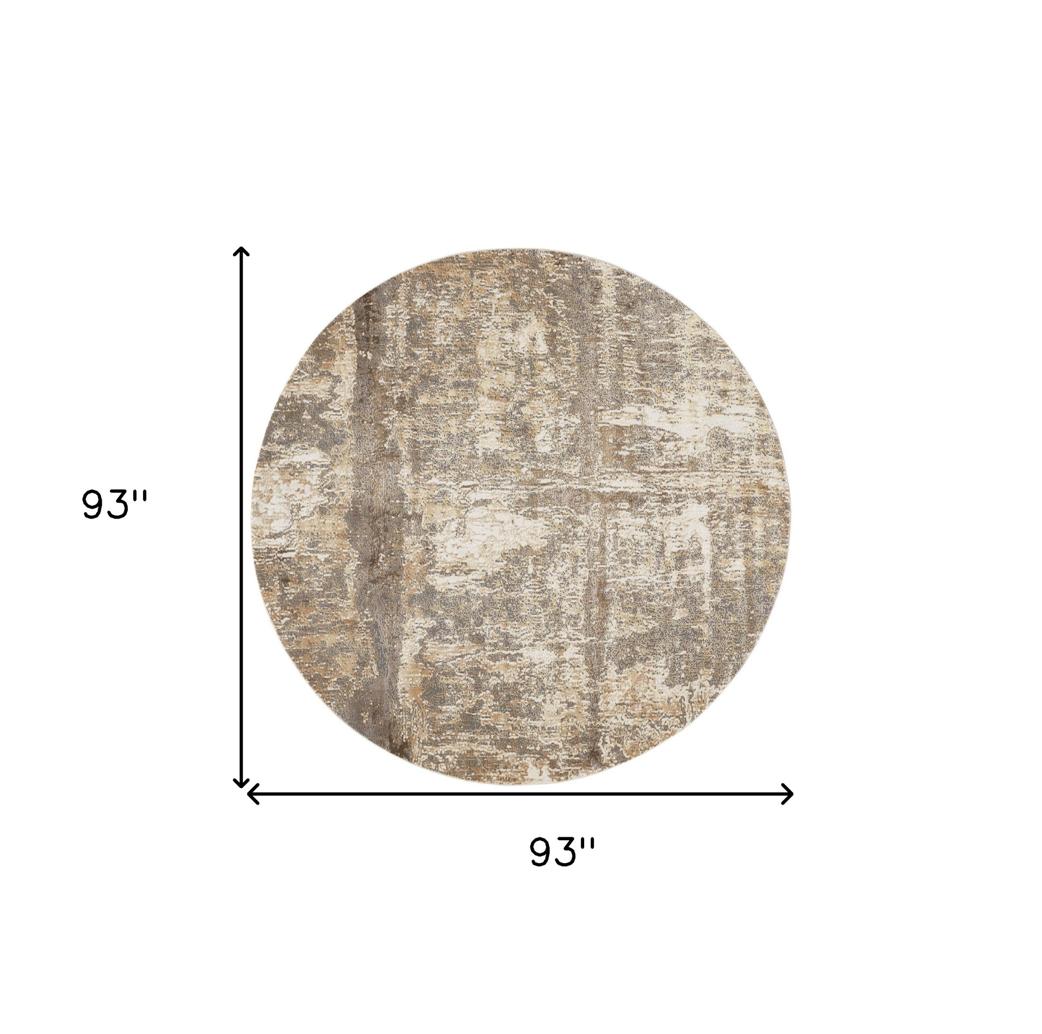 Add some artistry to your room with this 8-foot tan ivory and brown abstract round rug. Rugs are a great way to showcase your style, hide imperfections, warm your home and reduce noise. The non-slip backing ensures that it stays securely in place while you enjoy its beauty. Crafted with machine-woven techniques, this rug combines durability with a luxurious feel. Its fade-resistant material makes it suitable for both high-traffic areas and serene spaces. A rug pad is recommended for added comfort and protection, enhancing your space effortlessly. 93.00-inch h x 93.00-inch w x 0.39-inch d.