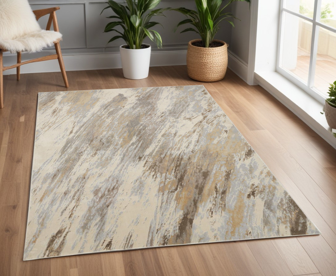 This 4-foot x 6-foot brown and ivory abstract non skid area rug, is a great way to add warmth to a room. This rectangle shaped rug features a abstract design in brown and ivory to give it visual interest. A classic shape marries with good looking design for your space. 45-inch H x 67-inch W x 0.39-inch D