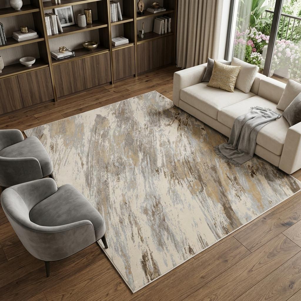Add some artistry to your room with this 10' x 14' ivory tan and brown abstract area rug. This rectangle shaped rug features a abstract design in ivory tan and brown to give it visual interest. A classic shape marries with good looking design for your space Made in Turkey, this rug offers high quality combined with good looking designer sensibilities. Place this area rug against a hardwood or tile floor and it will enliven your living space with style and sophistication. 0.39" H x 120" W x 168" D