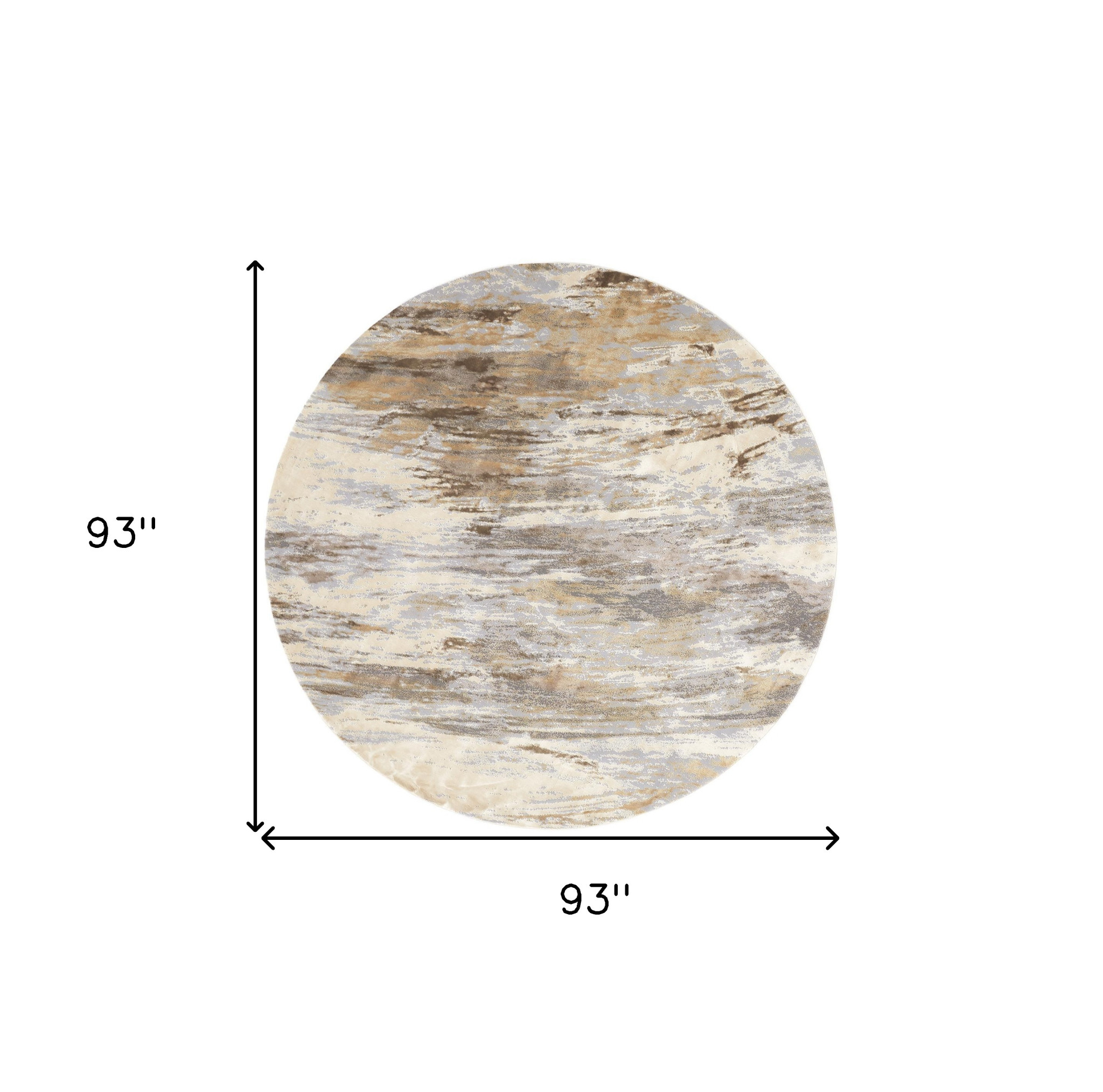 This 8-foot brown and ivory abstract non skid round rug, is a great way to add warmth to a room. This geometric round shaped rug features a abstract pattern in brown and ivory that combines a good looking print with a unique and updated shape. The mix of shape, color, and design gives this rug refreshing visual interest. 93-inch H x 93-inch W x 0.39-inch D