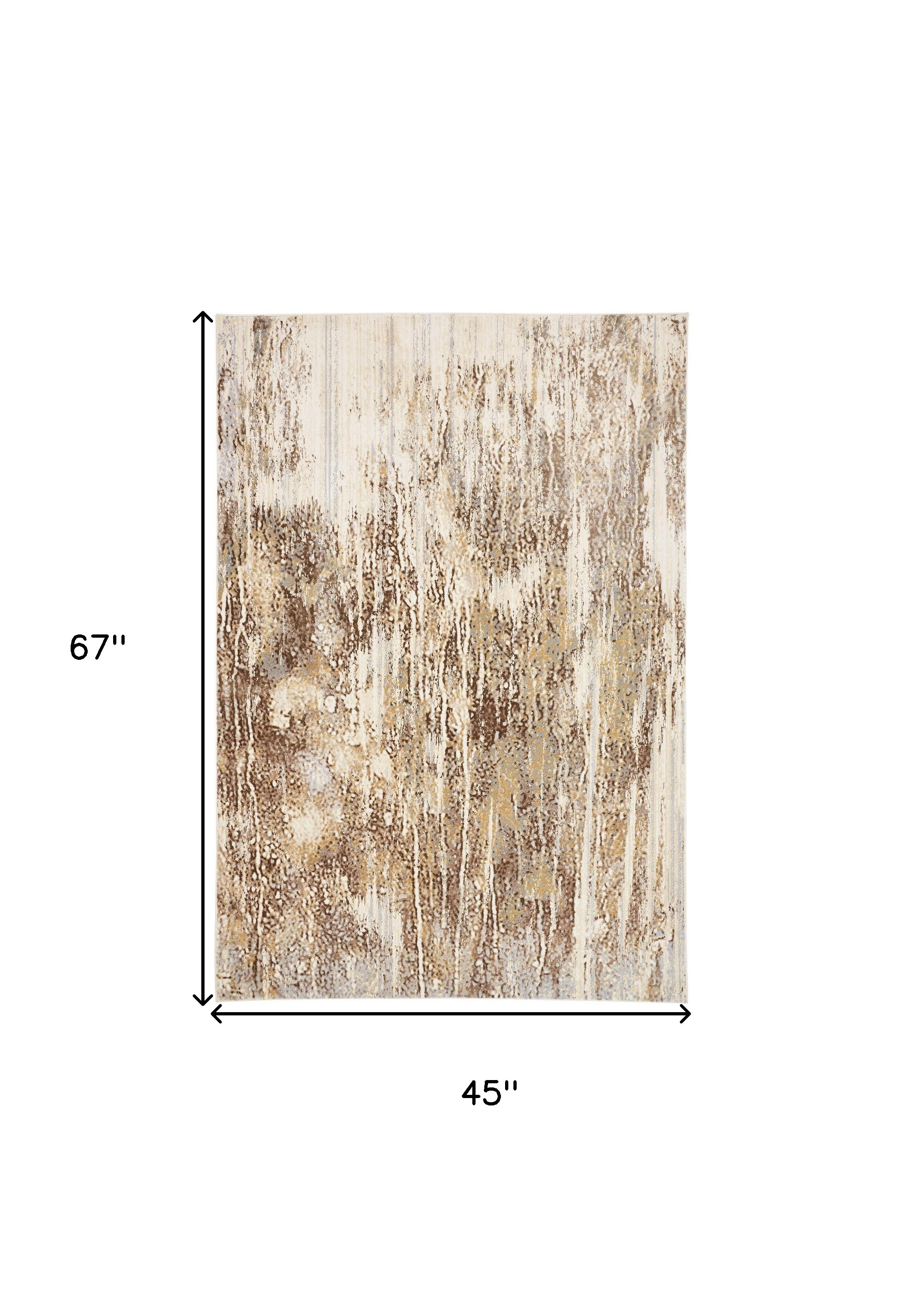 Set an inviting tone in your space with this 4' x 6' tan ivory and brown abstract area rug. This rectangle shaped rug features a abstract design in tan ivory and brown to give it visual interest. A classic shape marries with good looking design for your space This superior Turkish rug represents the highest quality and is built to last. Place this area rug against a hardwood or tile floor and it will enliven your living space with style and sophistication. 0.39" H x 45" W x 67" D