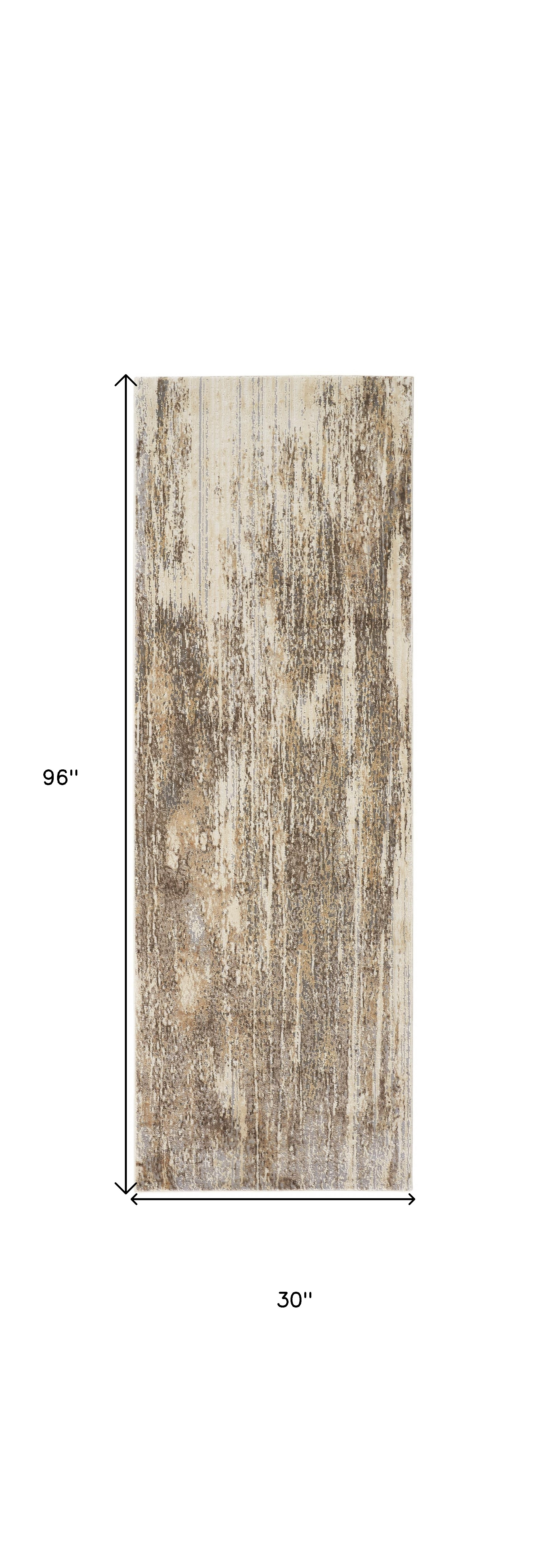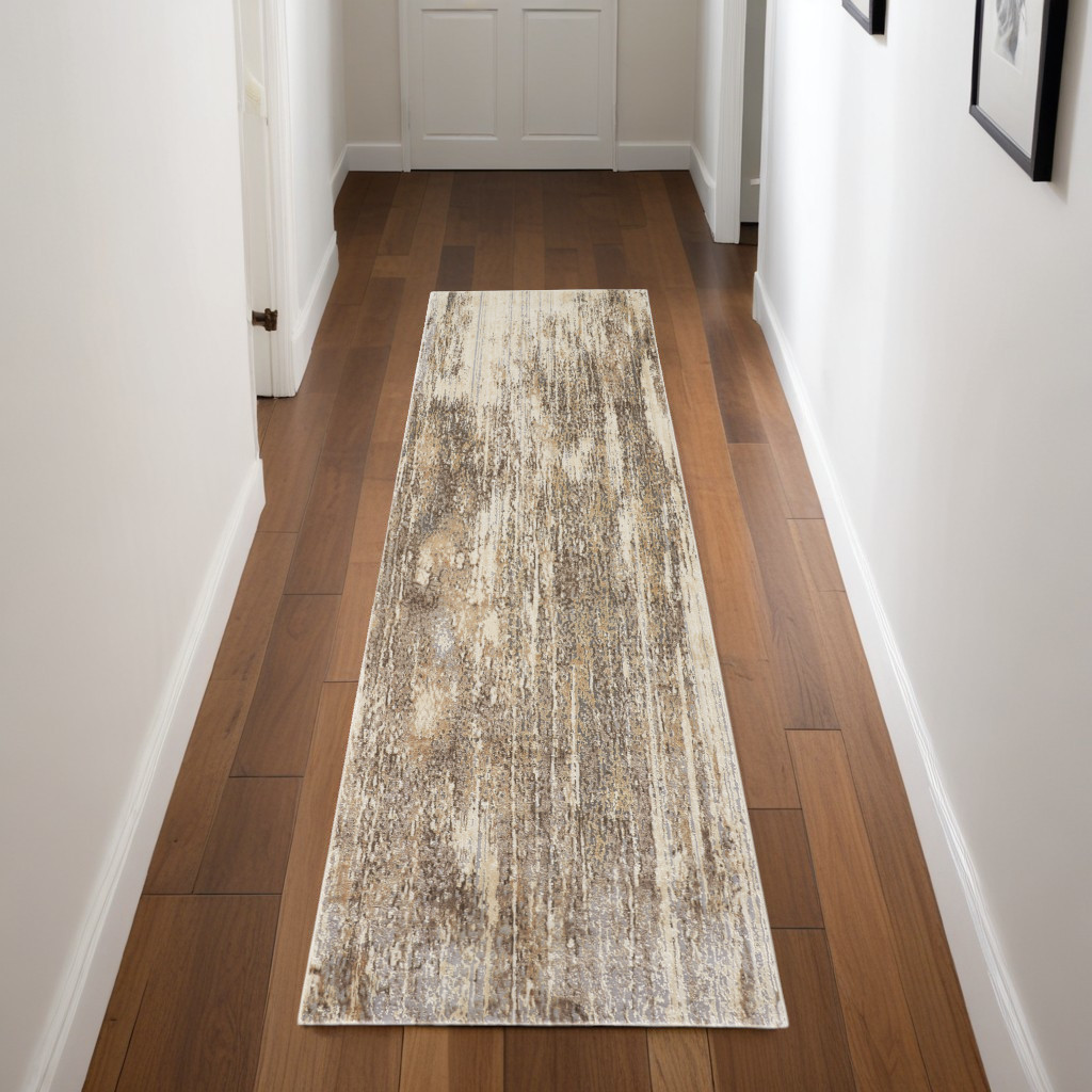 Set an inviting tone in your space with this 8-foot tan and ivory abstract non skid runner rug. This runner shaped rug features a abstract design in tan and ivory to give it visual interest. A classic shape marries with good looking design for your space. 30-inch H x 96-inch W x 0.39-inch D