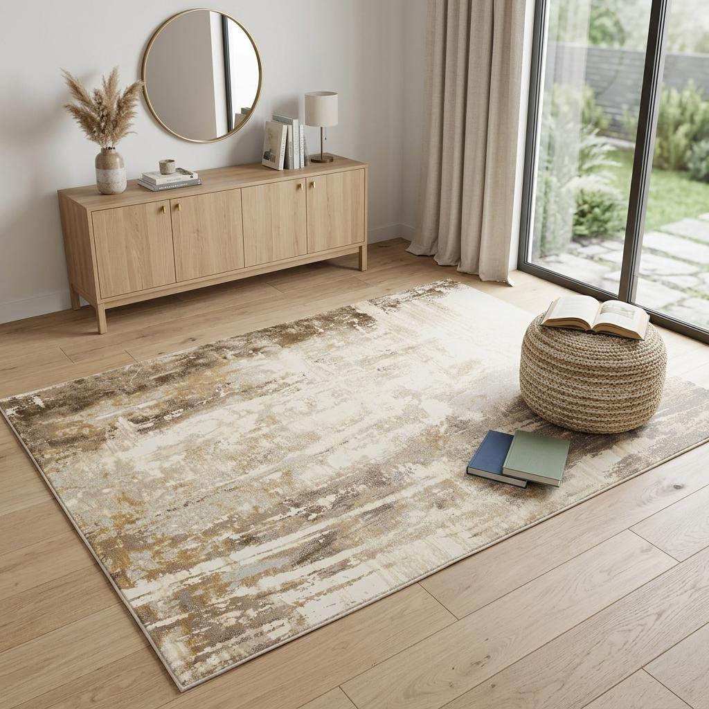 Set an inviting tone in your space with this 4' x 6' tan ivory and gray abstract area rug. This rectangle shaped rug features a abstract design in tan ivory and gray to give it visual interest. A classic shape marries with good looking design for your space This superior Turkish rug represents the highest quality and is built to last. Area Rugs help to give warmth and sense of home to your space. 0.39" H x 45" W x 67" D