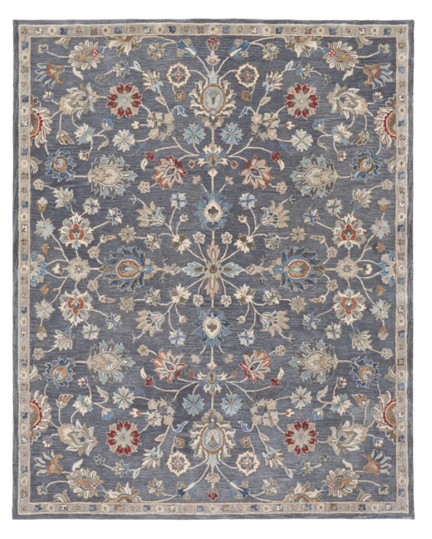 handmade stain resistant area rug, stain resistant area rug, resistant area rug, wool floral tufted handmade stain, gray ivory red wool floral |